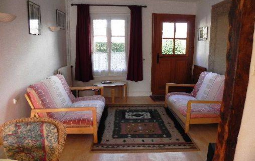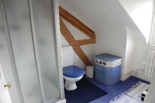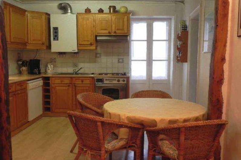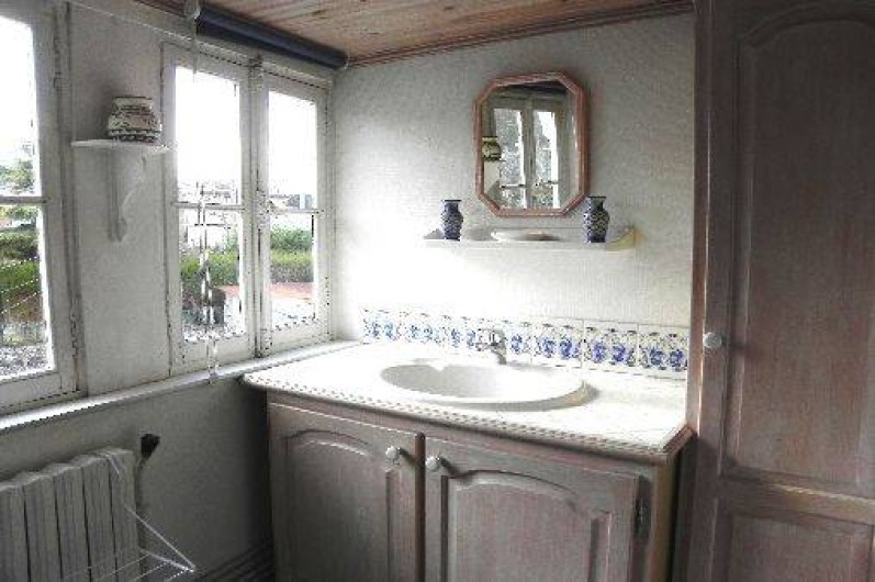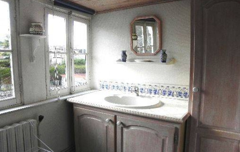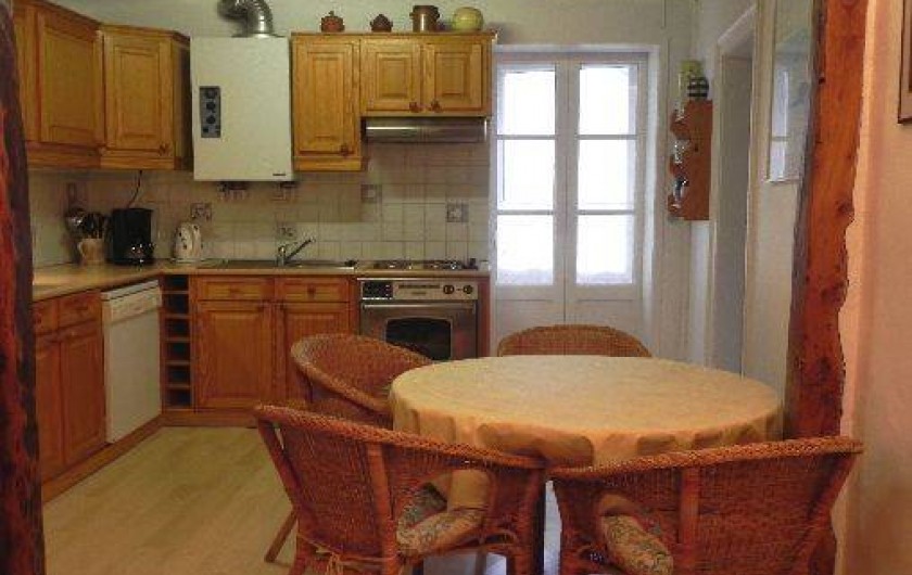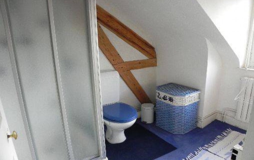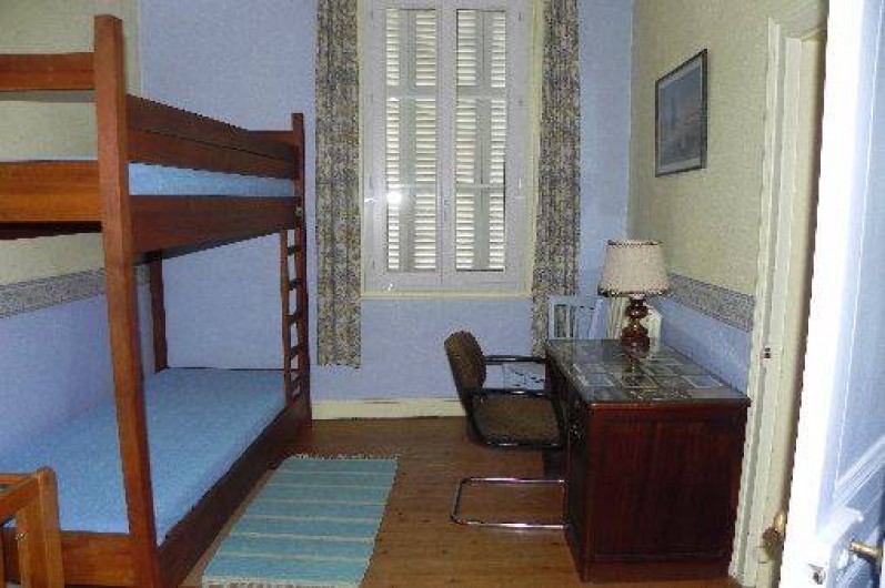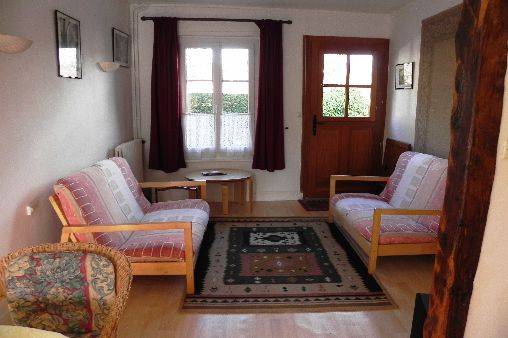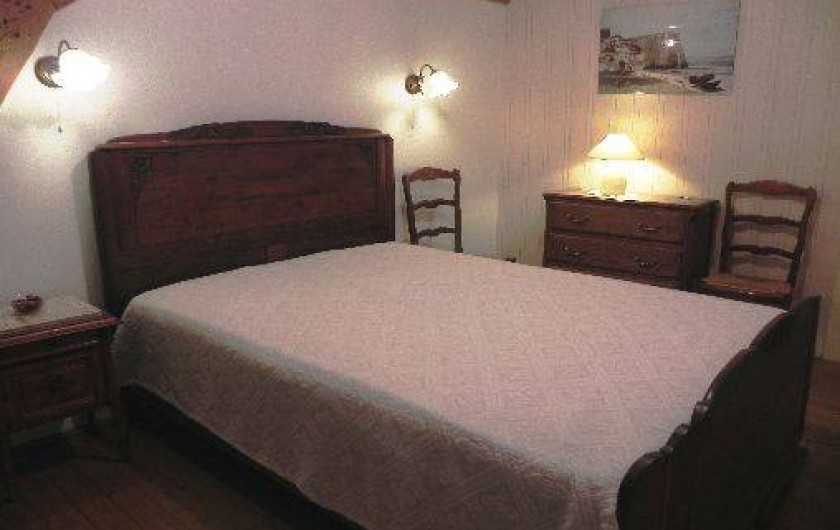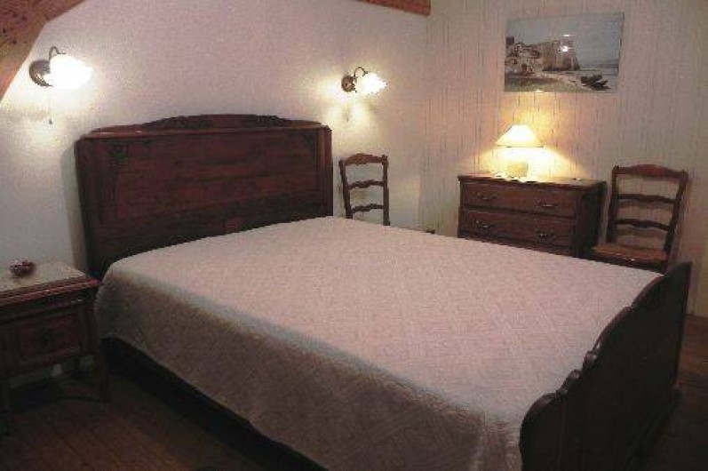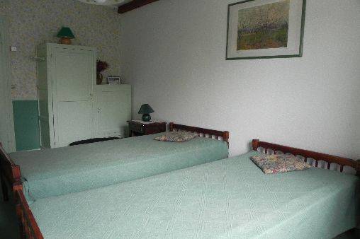 l'étage, salle d'eau et WC, une chambre avec 1 lit de 2 personnes (140x190), une chambre avec 2 lits d'une personne, superposés. Lit et chaise de bébé. Terrasse avec salon de jardin et barbecue. Chauffage au gaz. Electricité incluse. Forfait ménage inclus. WIFI inclus Garage couvert à 500 m inclus. Gite agréé "Gite de France".