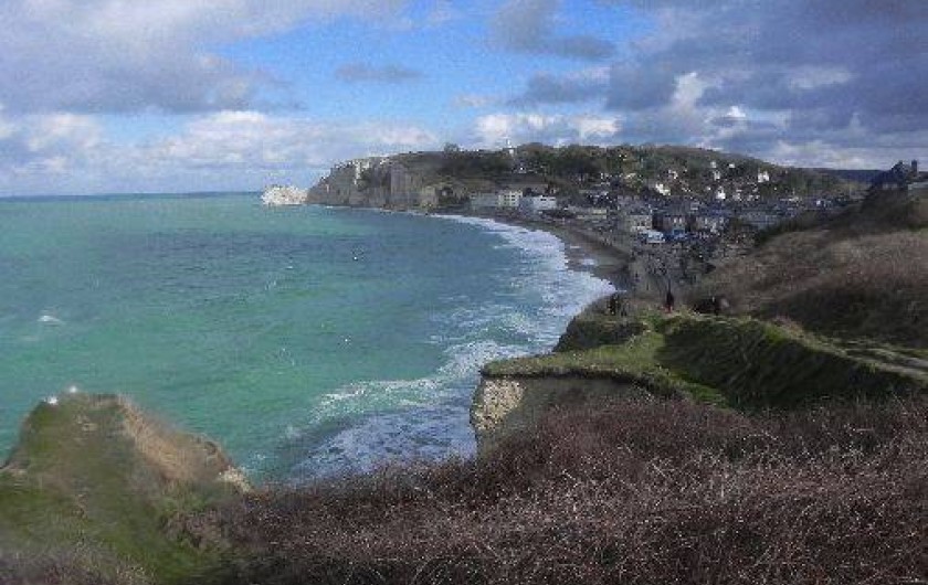 Maison traditionnelle mitoyenne, agréable et confortable, située dans le centre historique de la station à 500 m de la mer et de ses célèbres falaises. Terrasse plein sud fleurie derrière la maison. Etretat lieu de séjour d'artistes et d'écrivains, au lieu de l'impressionnisme ; promenades balisées sur les falaises.