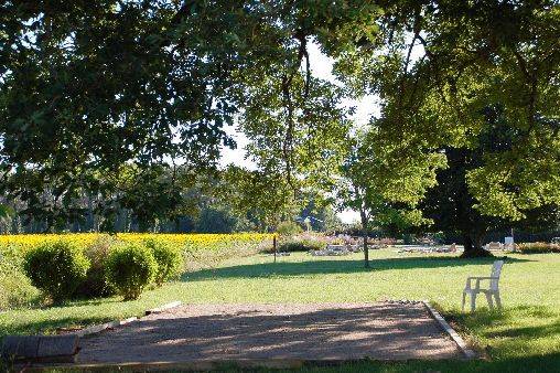 Le jardin est d'un hectare avec un terrain de pétanque et une piscine de 100m², en plus, un terrain de volley badminton et le hêtre.