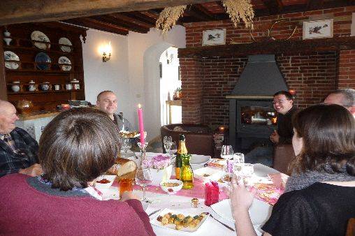 Des jeux de société sont à disposition. Le séjour s'ouvre sur la terrasse abritée du gîte, par une porte fenêtre.