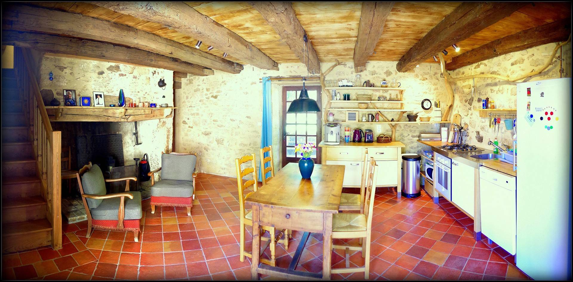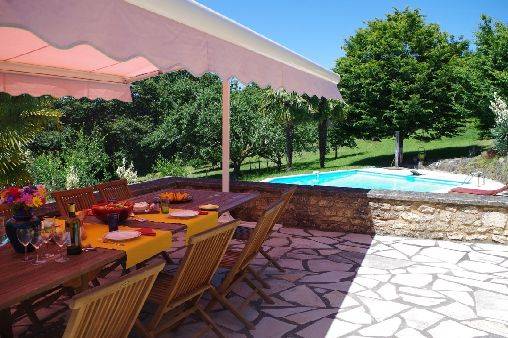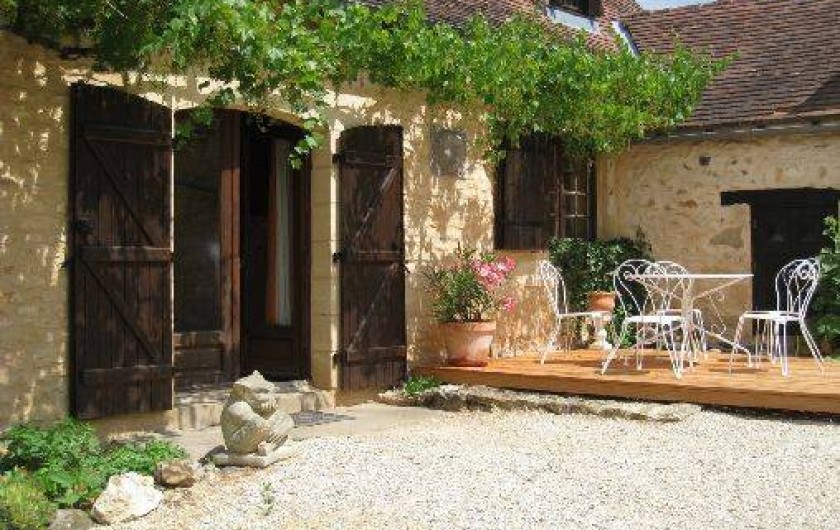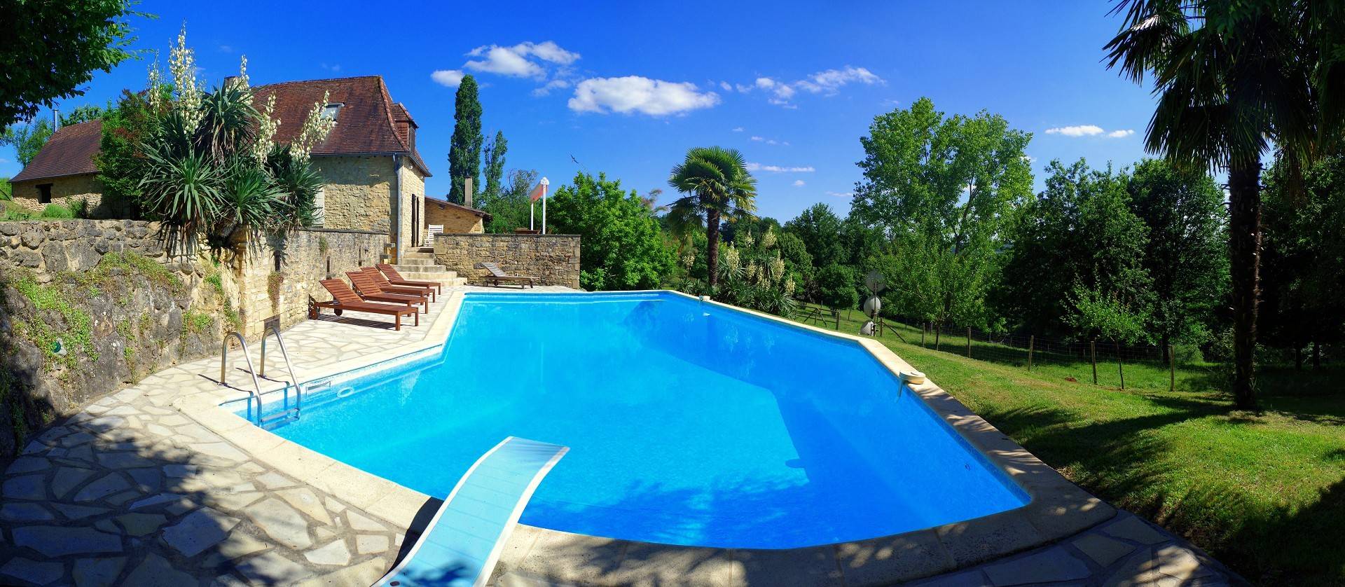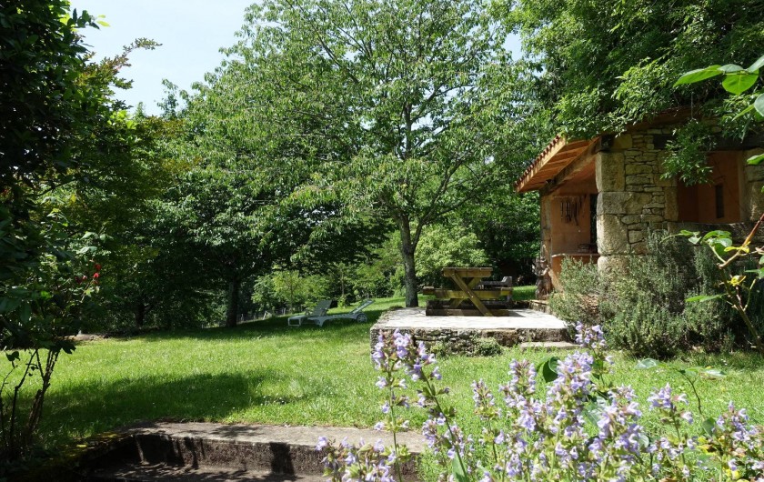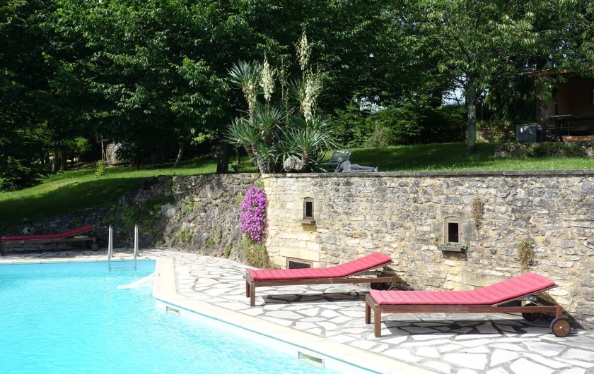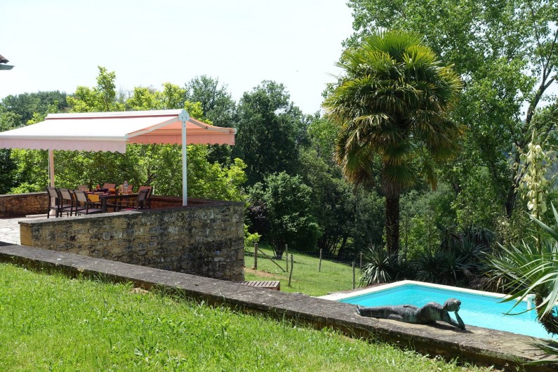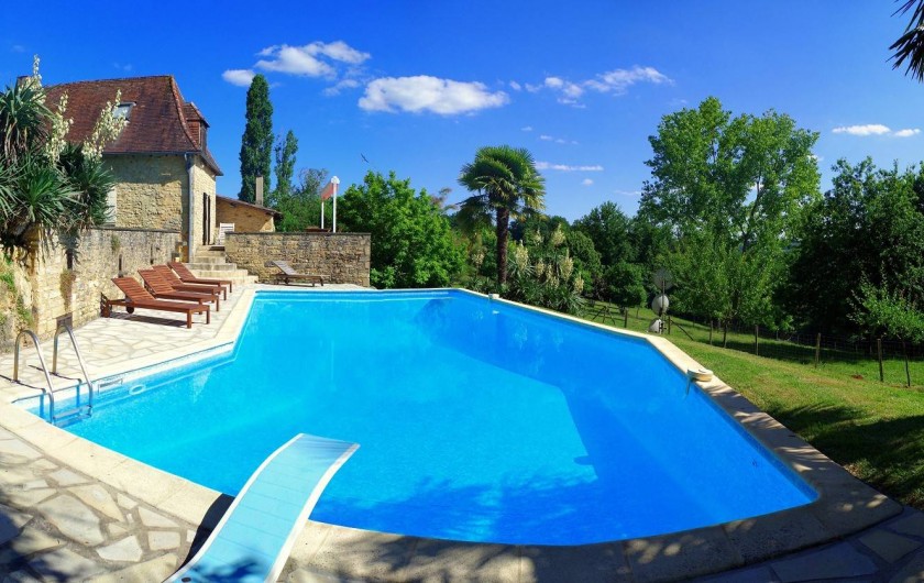 Ancrée sur une colline, la maison « Laudinie » est d'une beauté féérique. La vue, par-delà les collines vertes et les vallées, est merveilleuse. Depuis la route secondaire, un chemin de terre, sur 100 m environ, mène à l'ancienne ferme. Isolée, celle-ci comporte de grandes terres privées et un grand jardin. Celui en quête de repos le trouvera ici. Il n'y a pas de voisins à proximité et l'on est protégé des regards indiscrets aux alentours. Ici, vous passerez des vacances en toute intimité et vous reposerez. L'emplacement spacieux autour de la piscine (6 m x 13 m, jusqu'à 3 m … de profondeur) invite à prendre des bains de soleil dans le calme et les grands arbres prodiguent l'ombre nécessaire. L'aire « Barbecue-Salon » couverte permet de faire des grillades, même lorsque les conditions atmosphériques sont incertaines. Depuis la cour intérieure et en passant par le salon, on accède à la grande terrasse de rêve où l'on savoure des couchers de soleil magiques. Et pourtant, la maison occupe un emplacement merveilleusement central, au coeur d'innombrables curiosités et d'activités de plein air du Périgord Noir, renommé pour ses châteaux, ses petites villes moyenâgeuses (Sarlat 25 min) et les cavernes préhistoriques (Les Eyzies 10 min). Point phrare, piscine 3 étoiles. Lire moins Lire la suite