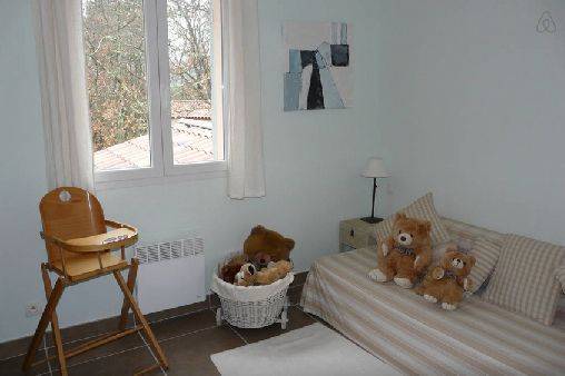 séparés et une troisième avec lit double), 2 salles de bain,3 wc, une terrasse d'été couverte avec plancha dominant la piscine.Sur place, vélos, portique, jeux d'enfants et de société,( et bien entendu pétanque!) lit et chaise bébé à disposition.