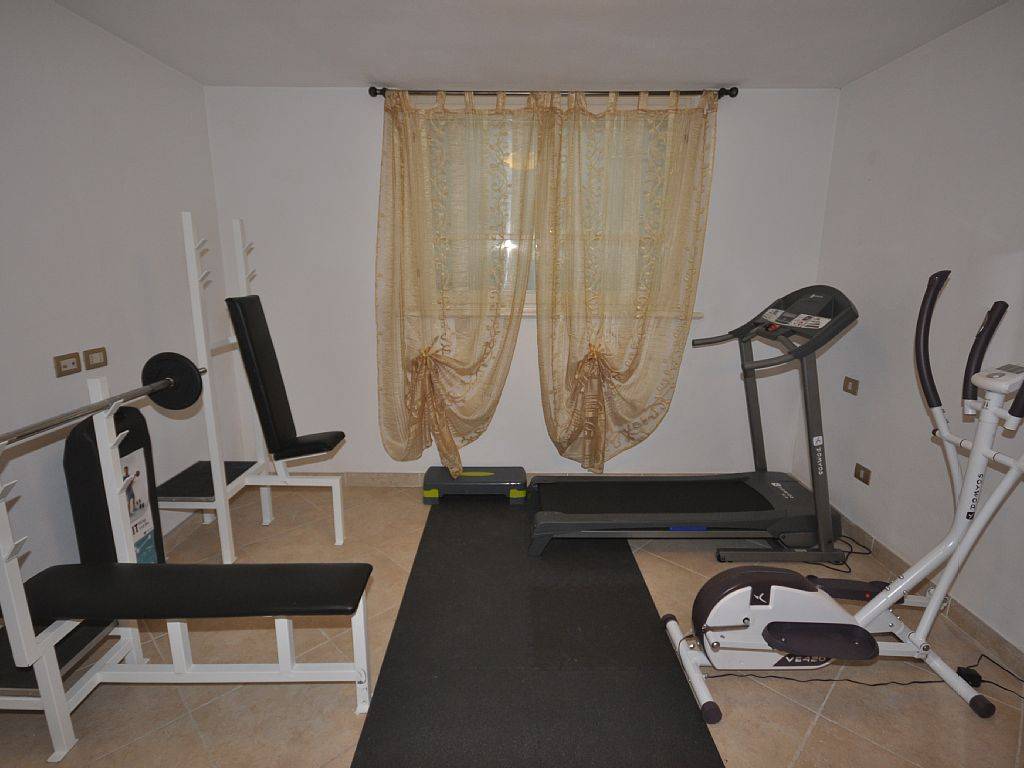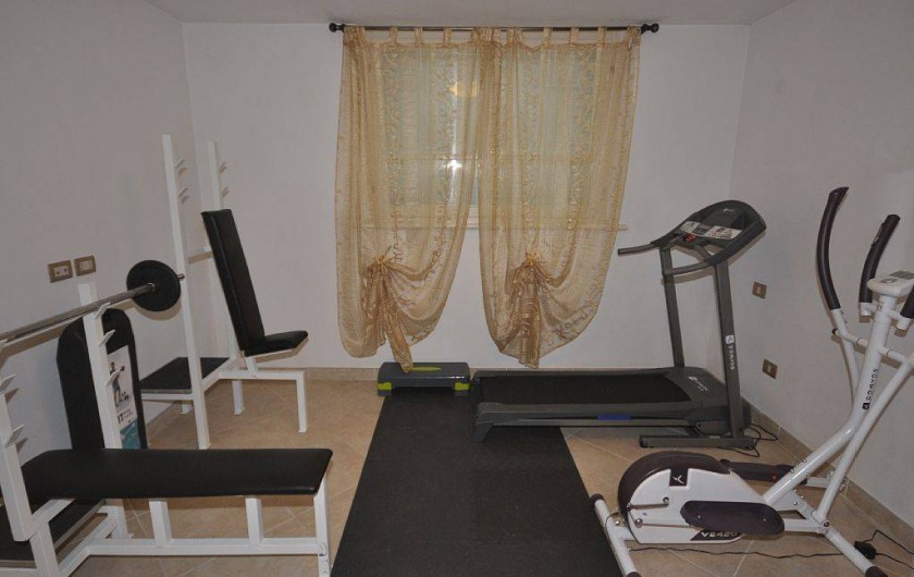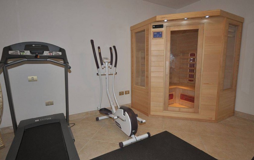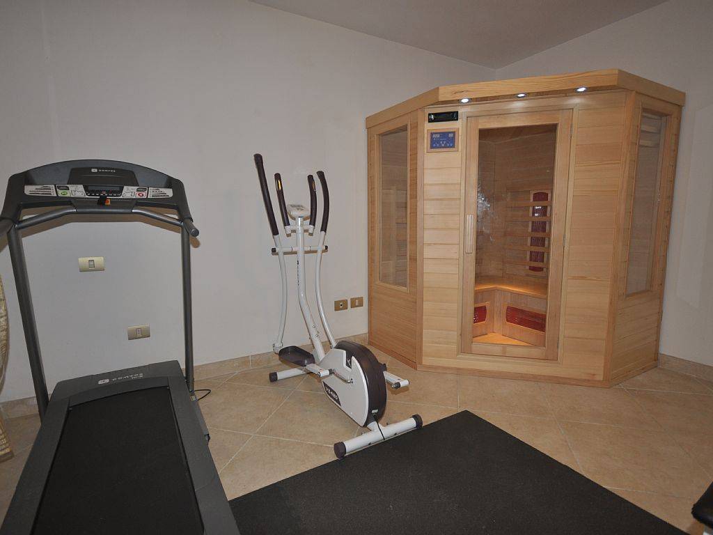 En demi sous-sol: salle de fitness, sauna, chambre double avec salle de douche,