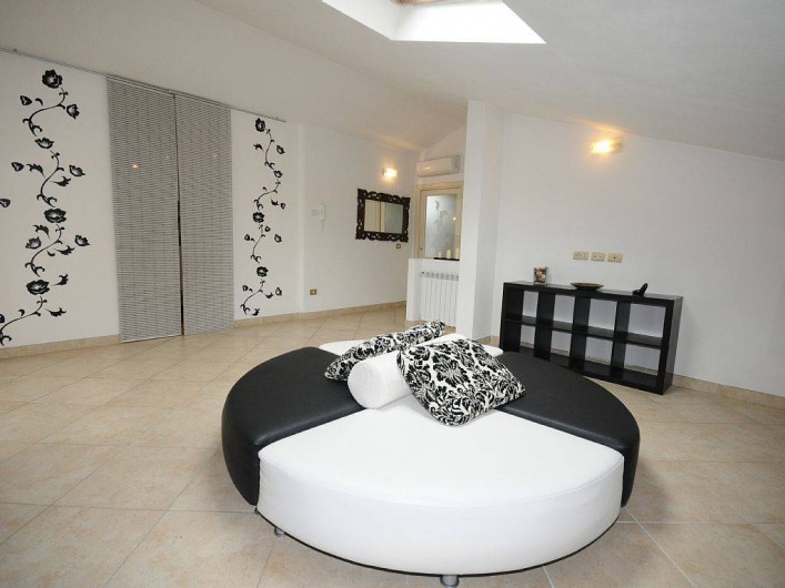 Au premier étage: une chambre avec salle de bain et une chambre avec salle de douche. Dressing, séjour avec pouf, terrasse.
