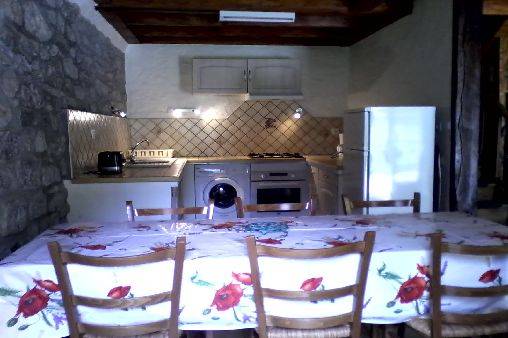 Elle comprend, au rez de chaussée, une partie cuisine (lave vaisselle, lave linge, four à pyrolyse, four micro ondes, plaque gaz 4 feux...) et un espace salon avec deux canapés et une télévision.