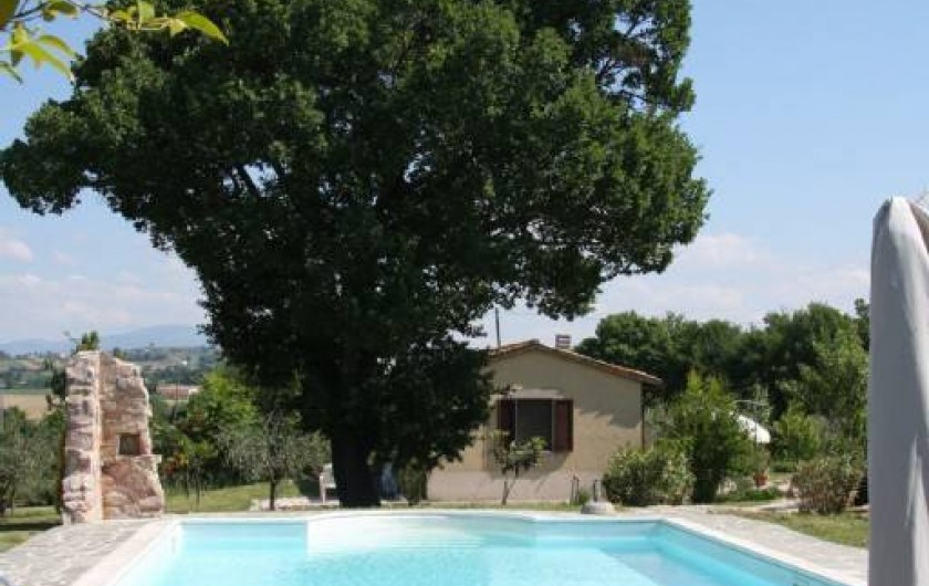 Il Mulino, autrefois partie de l'usine d'un évêque, situé près de Montefalco dans un cadre typiquement collines de l'Ombrie entre vignes, oliviers et champs. Rénové en 2001, ce complexe comprend une grande maison avec appartement Oliva et deux maisons plus petites. Quercia, l'une des deux maisons plus petites, dispose d'un grand manger dans la cuisine, deux chambres, un salon, une salle de bains privée et deux sièges de jardin avec vue sur le jardin et les collines au-delà. Prendre dans le collimateur de l'Ombrie et ensuite récupérer le reste de la piscine ou dans le jardin