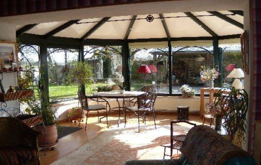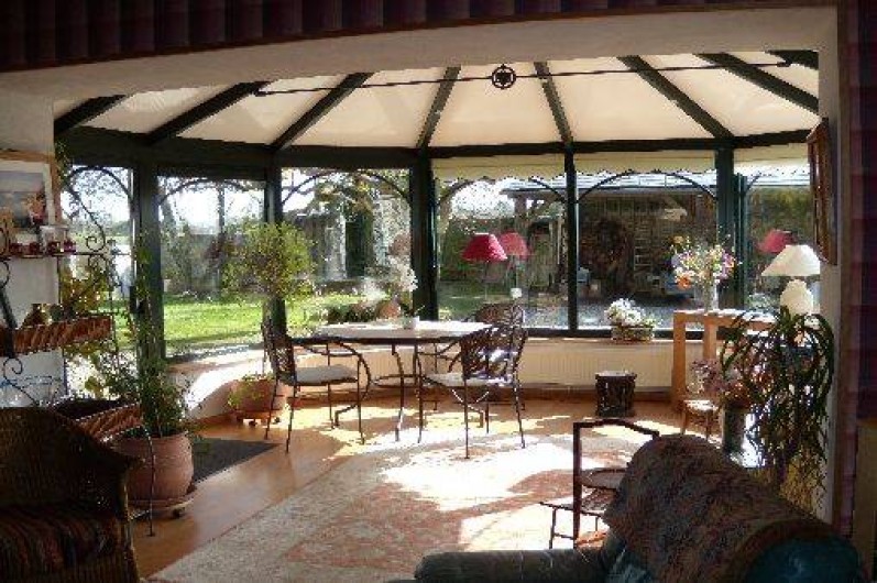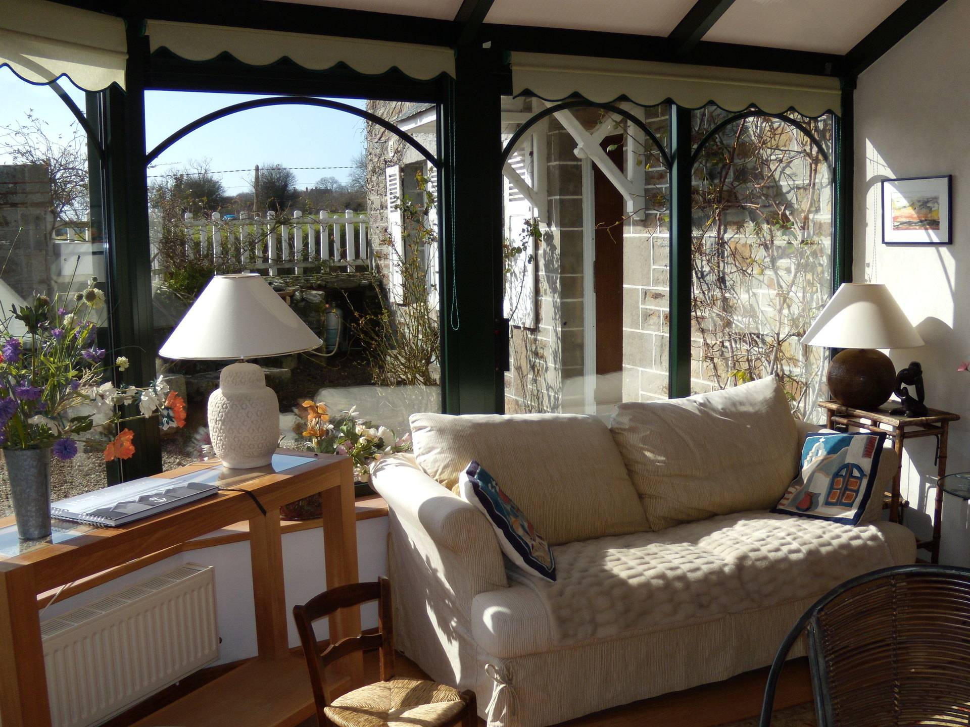 Au rez-de-chaussée une grande cuisine, un salon très agréable avec cheminée d’époque et grande véranda ensoleillée, des toilettes et une buanderie.