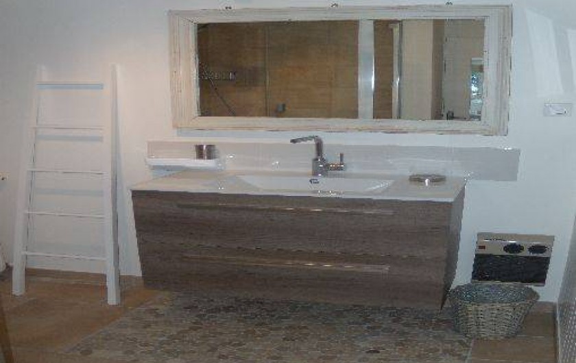 A la buanderie, lave-linge et sèche linge, un grand point d’eau, un petit étendage à linge.