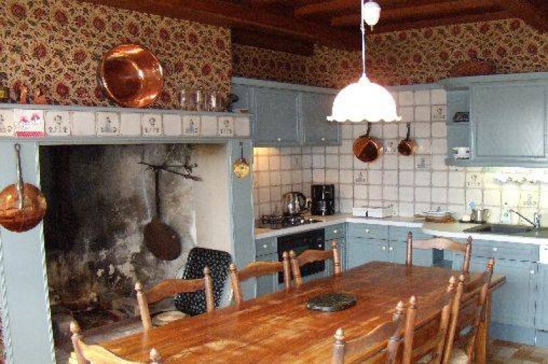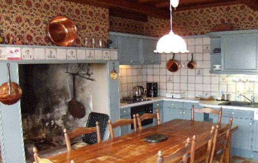 A la cuisine, réfrigérateur, table de cuisson 2 gaz/2 induction, micro-onde, four traditionnel à chaleur tournante, lave-vaisselle, cafetière électrique, grille pain, une grande table et ses 8 chaises.