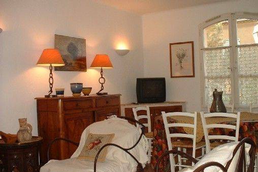 Dominant le golfe de Saint Tropez, Grimaud, village médiéval, vous accueil dans cette maison provençale calme et confortable située au centre village à moins de 5 minutes à pieds des commerçants, dans une impasse, parking à l'ombre en face de la maison. Pour 7 personnes, grand séjour avec cheminé, cuisine équipée, 4 chambres, 2 salles de bains, une douche, 3 WC et un large patio avec barbecue. Climatisation, électroménager complet, TV, Wifi,... Intérieur décoré avec soin agrémenté d'un beau mobilier. Plages, tennis, golf, équitation à proximité, très nombreuses … excursions dans l'arrière pays possibles. Lire moins Lire la suite