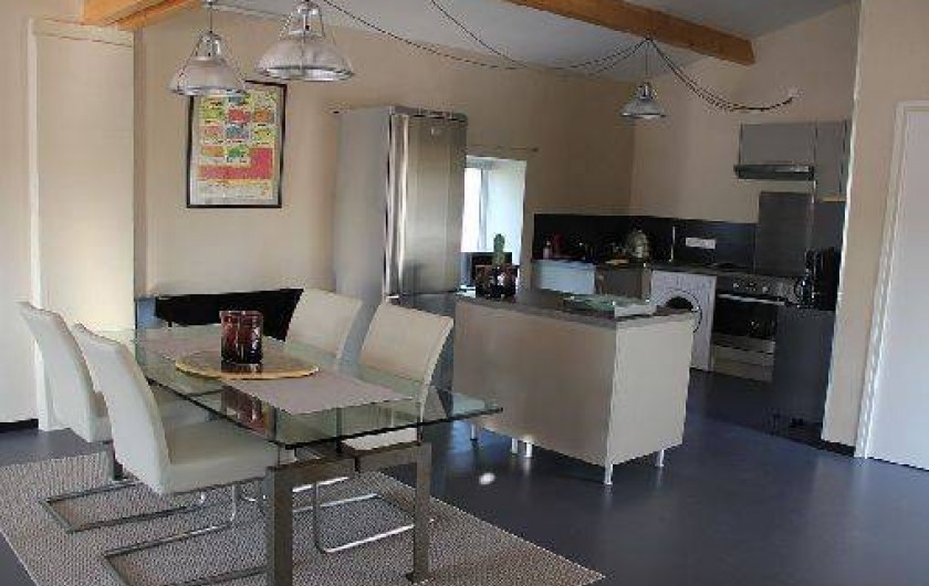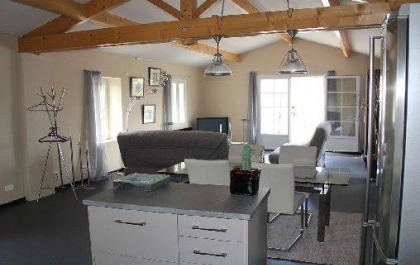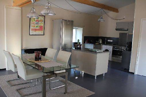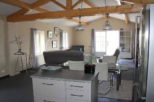 Longère Vendéenne aménagée en loft moderne et contemporain de 80 m2, salle de douche WC, deux très bon canapés lits 2 places avec matelas dunlopilo. cuisine aménagée et complètement agencée,lorsque que nous disons entièrement agencée c'est tout simplement comme a la maison, vous y trouverez tout se que l'on peut trouver dans une cuisine, en clair il n'y à pas que 4 verres 4 assiettes 4 cuillères 4 couteaux etc... Un frigo congélateur 200 L100 L, Machine a laver le linge, Four chaleur tournante, Micro onde,