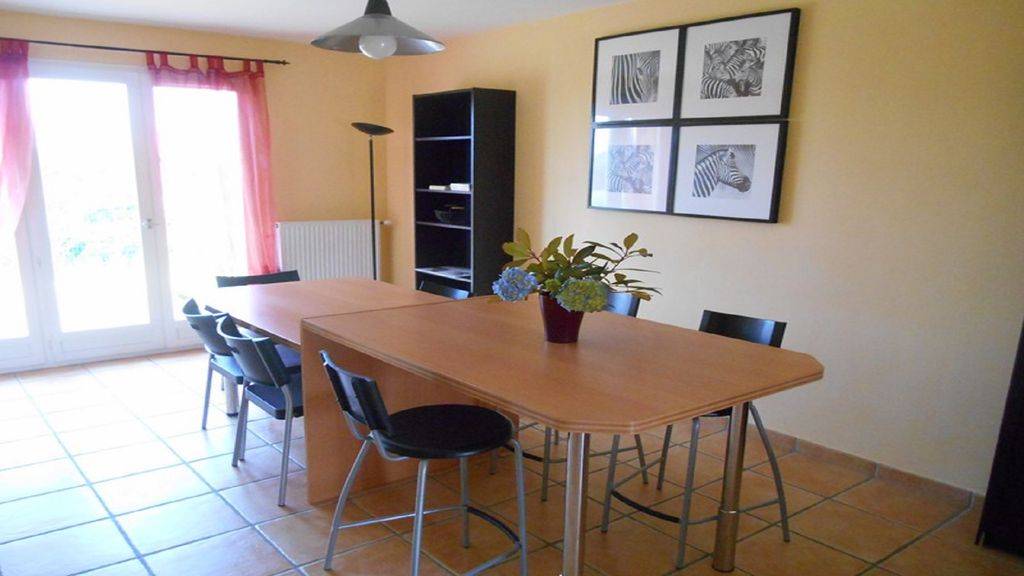 Maison de plain pied comprenant un séjour de 31 m², 3 chambres, 2 SDB, 1 WC, cuisine aménagée. Tout confort : lave vaisselle, plaques à induction, réfrigérateur/congélateur, micro-ondes, lave-linge, sèche-linge,