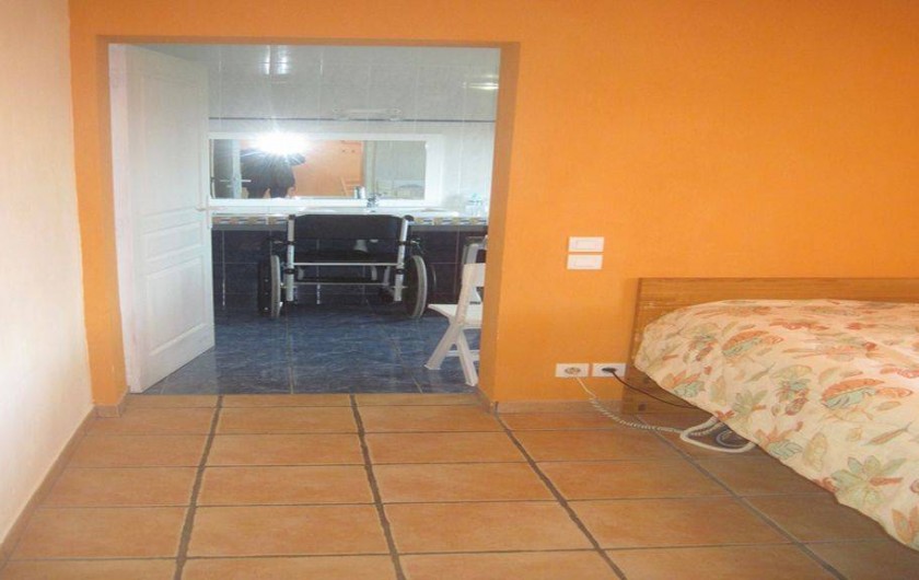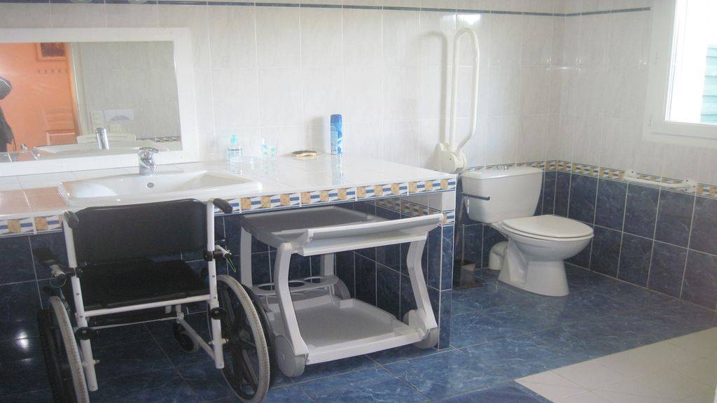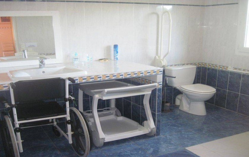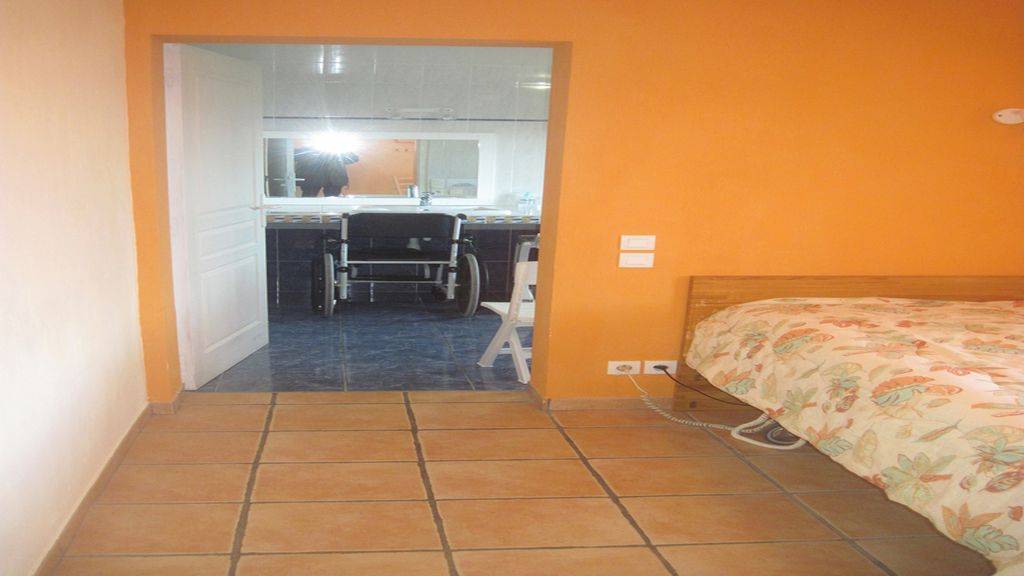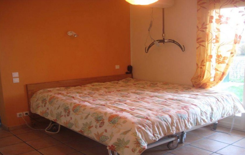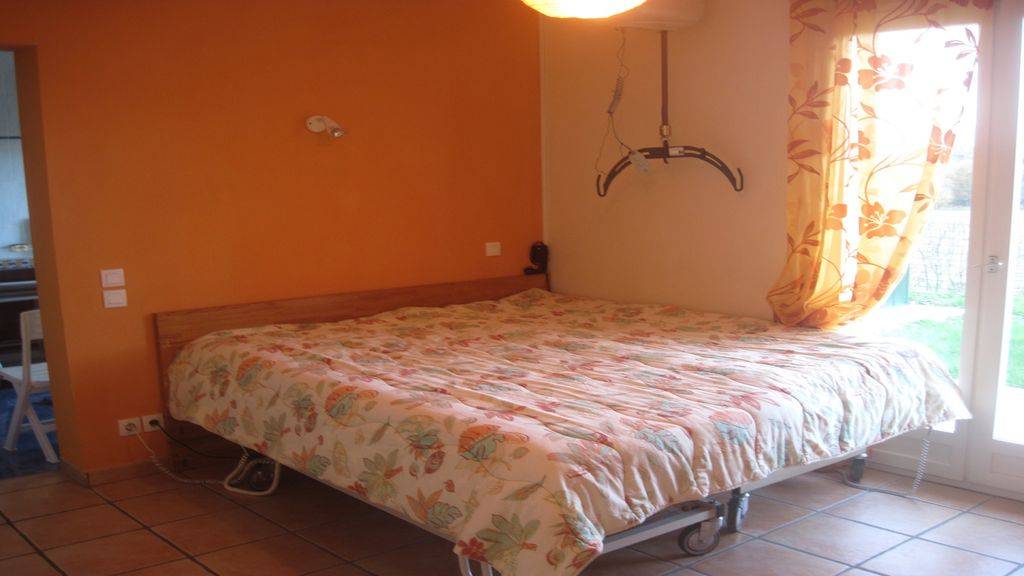 3 chambres dont 1 avec lit médicalisé et potence et Salle de douche (siphon sol) et WC (barres de maintien) attenants,.