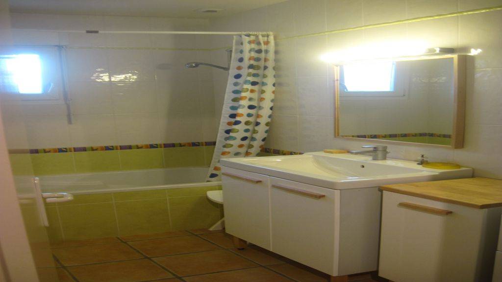 Auvent abrité, barbecue et transats. A proximité * commerces, terrain de sport, chemins de randonnée, à 10 mn de la plage avec activité nautiques.