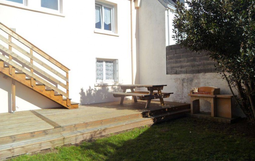 Dans le quartier de la pointe de Men Meur, dans une petite rue tranquille avec jardin clos, la maison se situe à 5 min à pied du centre ville (700 mètres du port et des commerces). Son emplacement vous