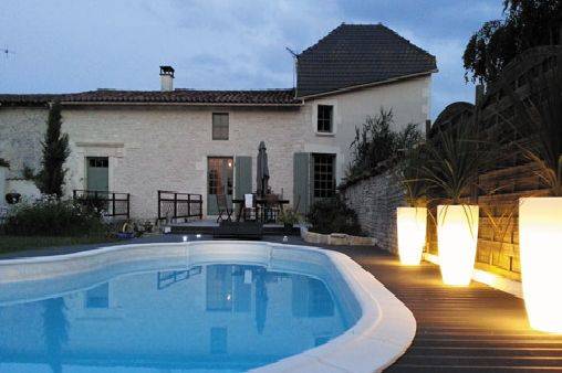 Maison charentaise avec piscine située dans le sud-ouest de la France, dans la région de Cognac et près de la côte atlantique.