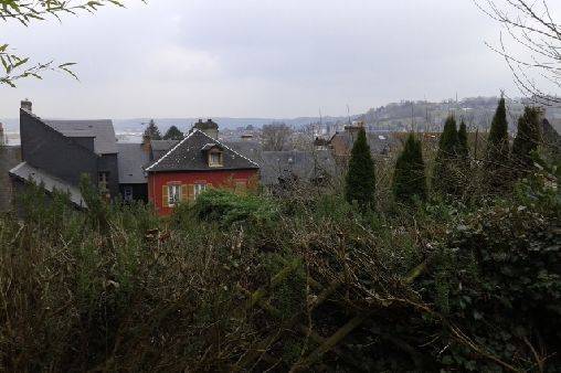 Vue sur le Pont de Normandie et les toits de Honfleur.
