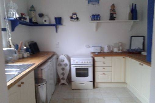 - Cuisine équipée (lave linge, lave vaisselle, four gaz, plaques gaz, micro onde, cafetière, bouilloire, grille pain, table à repasser)