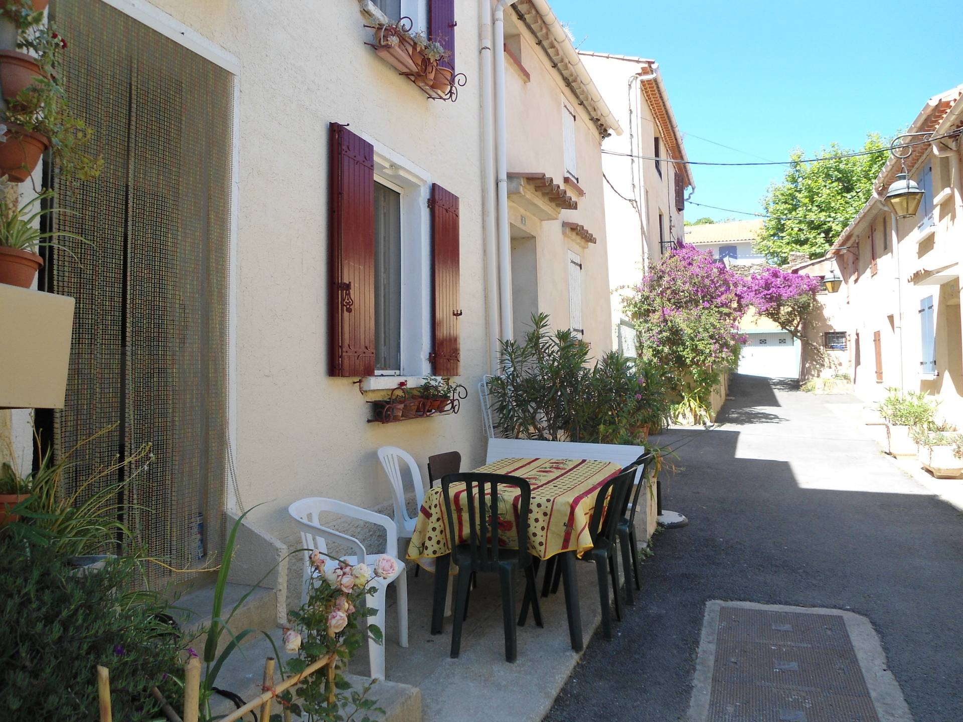 Loue presqu'île de Giens situé à l’extrémité de la presqu'île coté madrague petite maison pour 4 personnes composée d'un séjour avec coin cuisine ( micro onde, four, frigo-congel grille pain, etc ) lave linge d'une chambre avec un lit en 18O, d'une chambre avec deux lits en 9O salle d'eau avec W.C. Terrasse avec table et chaises à proximité des commerces et restaurants proche des chemins de randonnées à 10 mm des criques et plages de sable pas d'animaux à proximité des plages 150m et des circuits pédestres.