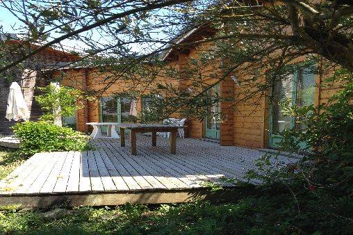 accueillant jusqu'à 9 personnes et un gîte avec deux chambres pour 2 à 6 personnes . Elle est sécurisée par une alarme. La terrasse qui l'entoure propose deux plages distinctes par logement.