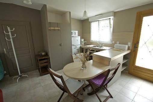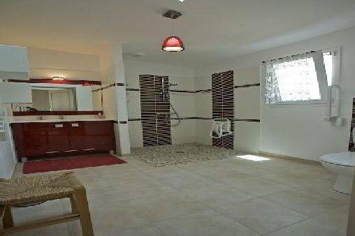 Loue jolie partie de maison de plain pied avec terrasses équipée pour 4 personnes, composée d'un séjour-cuisine équipée et aménagée de 24 m2, une chambre de 11 m2 et une grande salle d'eau de 6 m2. Le tout accessible aux personnes à mobilitée réduite.