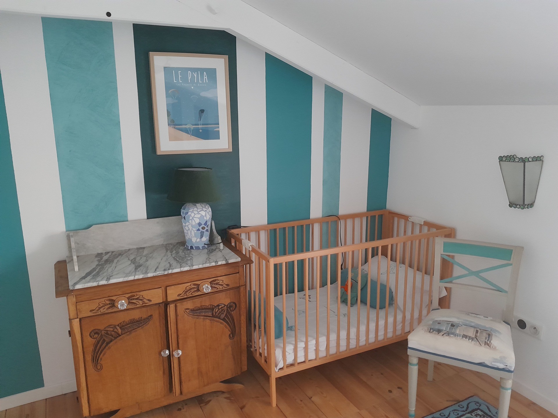 A disposition un lit, une chaise , une baignoire bébé, un pot, un matelas pour les changes.