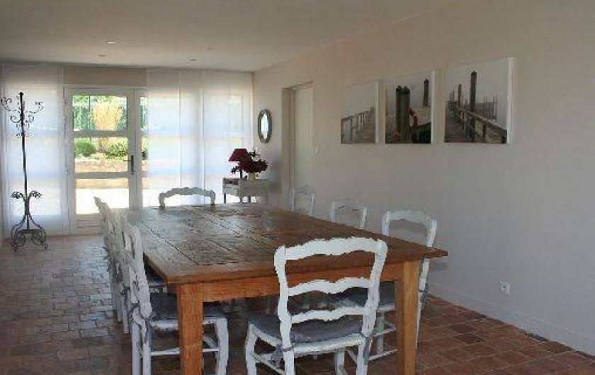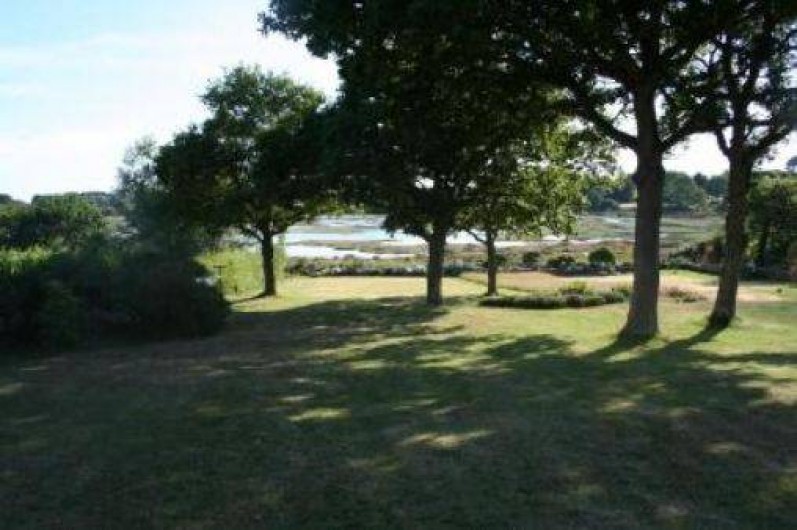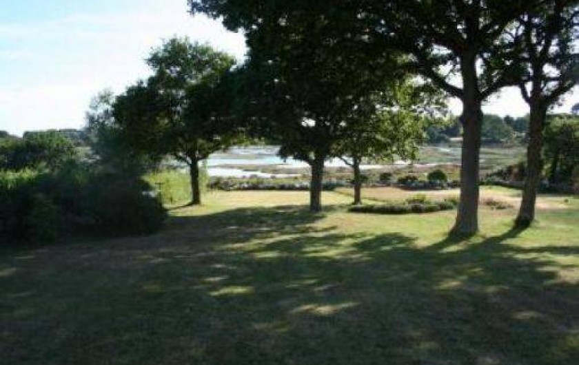 Elle bénéficie d'une magnifique vue sur une anse de mer et l'eau monte et descend suivant les marées donc à grande marée ( 1 fois pas mois environ) vous avez un plan d'eau superbe devant vous.