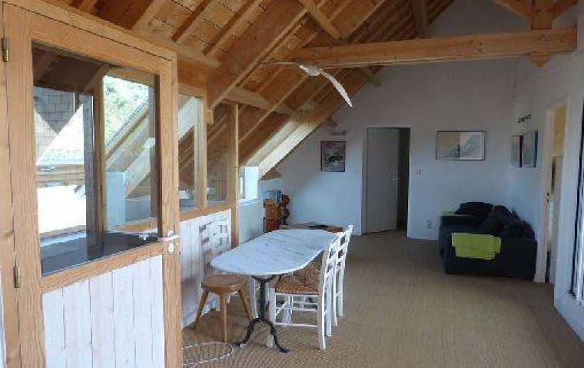 Maisons mitoyennes dans une belle propriété familiale mais celle louée est en "bout de chaine" à gauche face à la mer donc n'est pas gênée par les autres.
