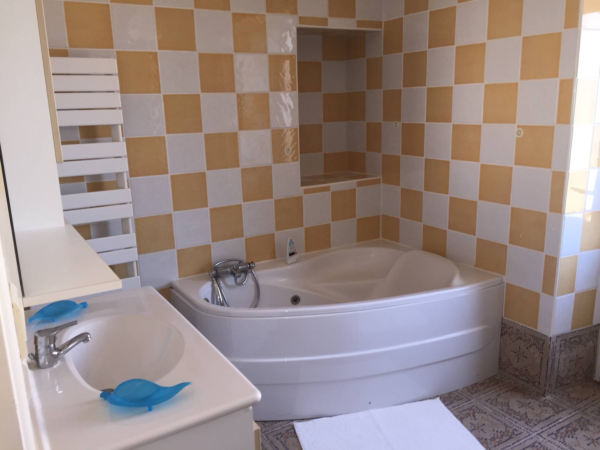 . Salle de bain avec baignoire balnéo et douche