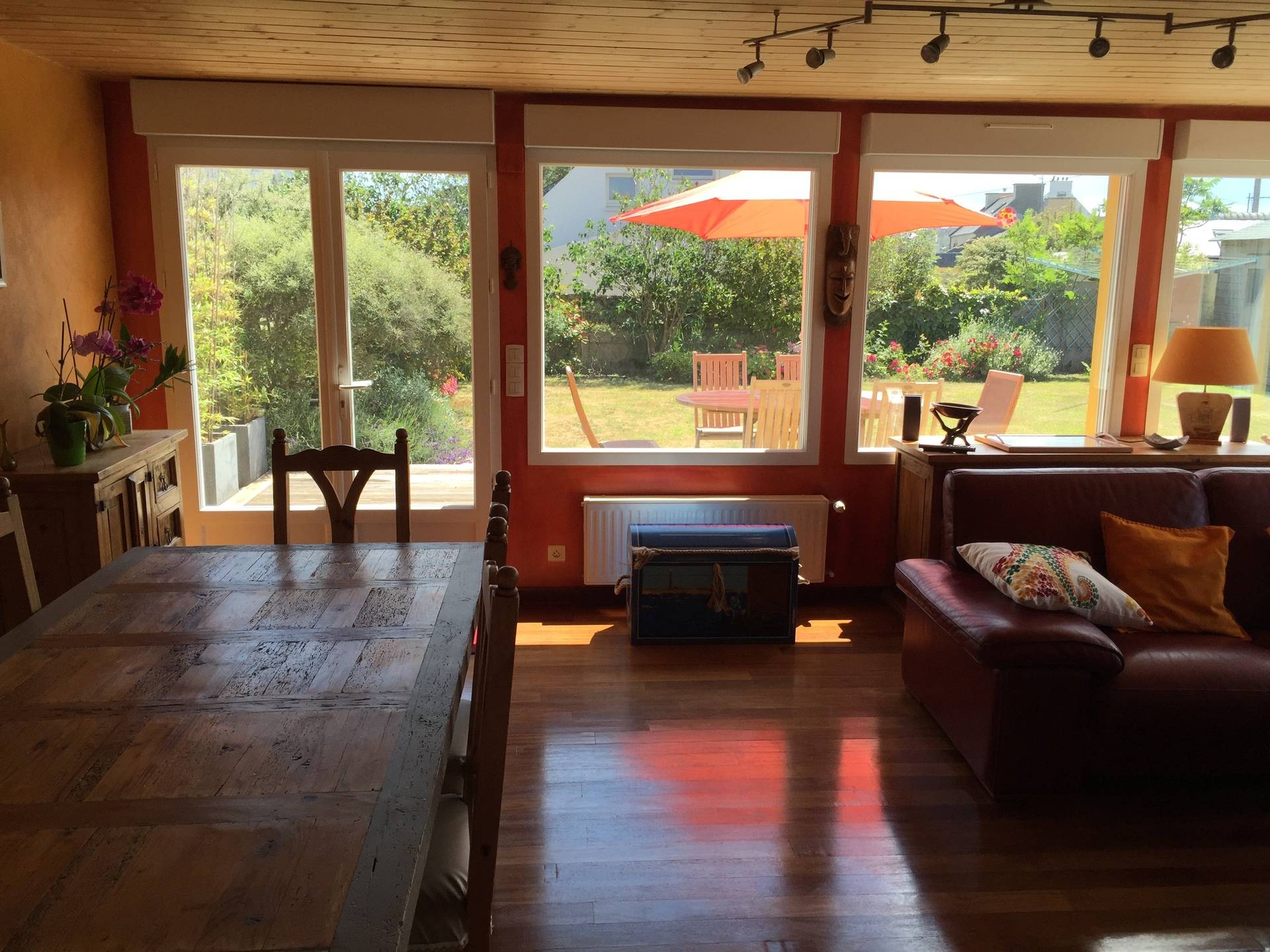 - Jardin de 400 M2 avec terrasse bois, salon de jardin, barbecue.