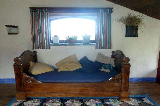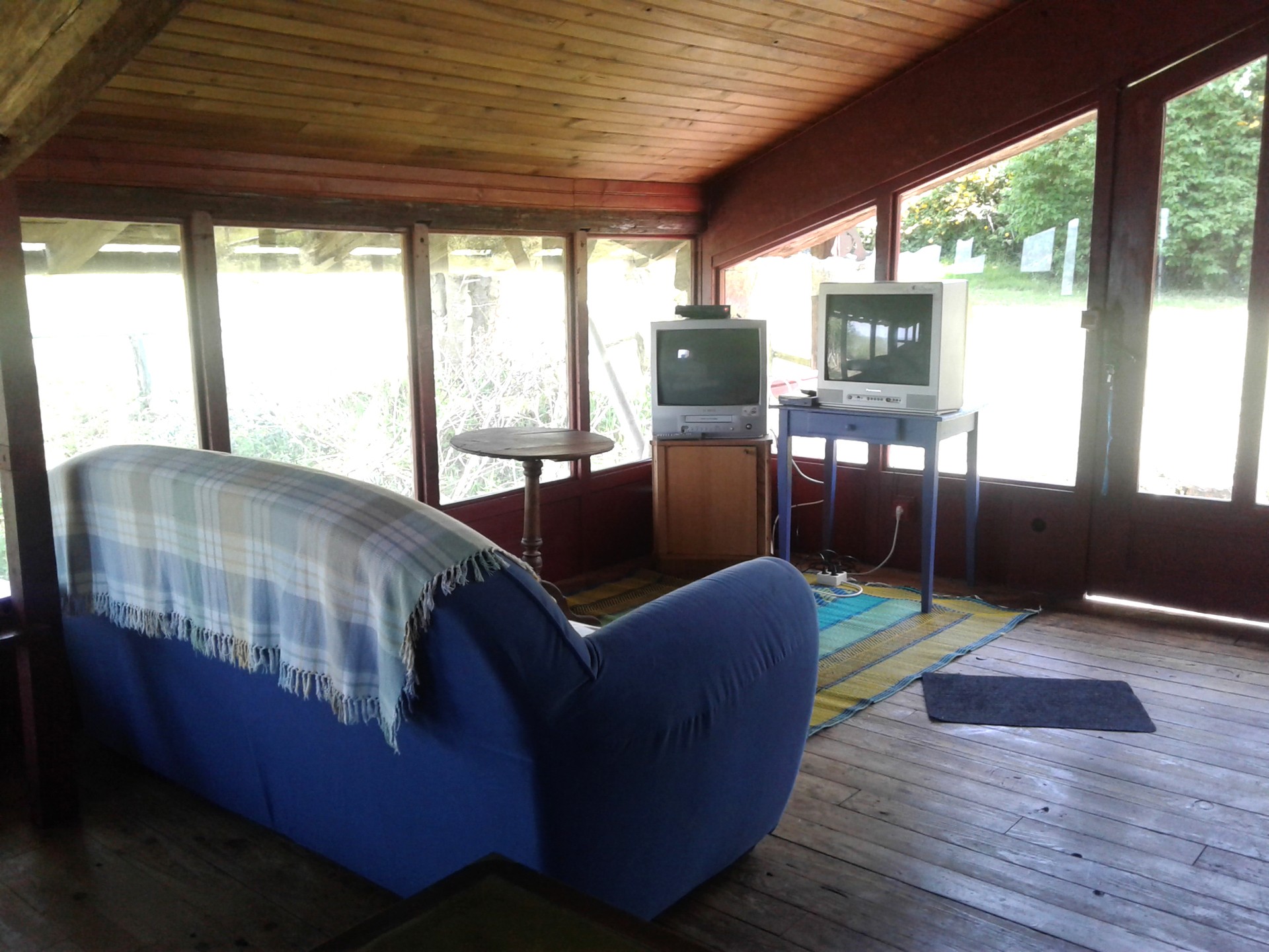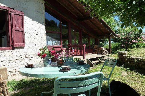permet de s'installer au soleil. Depuis la fenêtre de la salle à vivre vous profitez d'une superbe vue sur la vallée. L'ancien atelier, largement vitré, a été reconverti en un salon d'été, très simple, qui peut servir de pièce de jeux, de détente et permet de profiter pleinement de la nature quand le soleil tape fort...ou quand le temps est maussade. La cheminée- insert du salon donne envie d'une flambée, juste pour le plaisir.