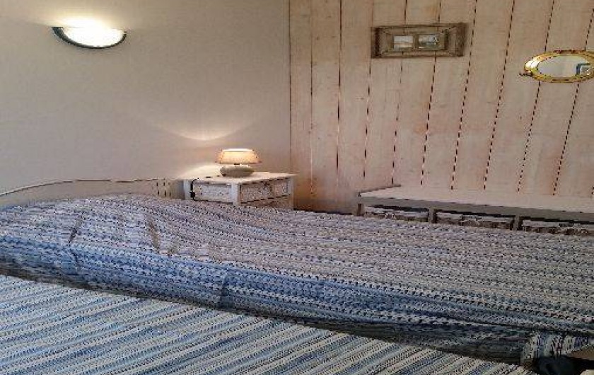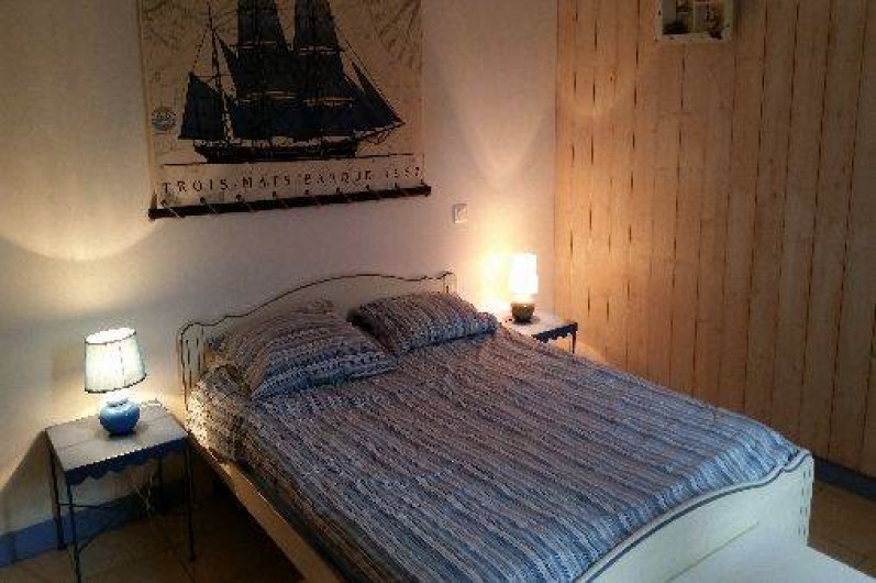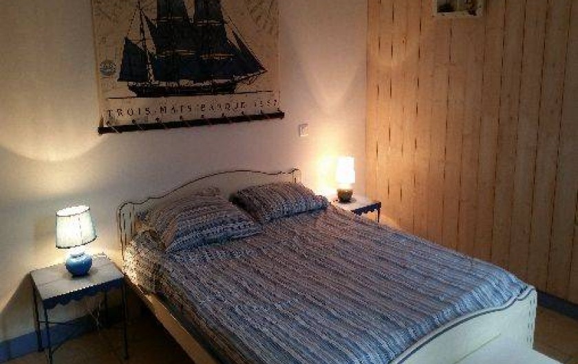 Une chambre avec un lit en 140 cm, un grand placard avec penderie,