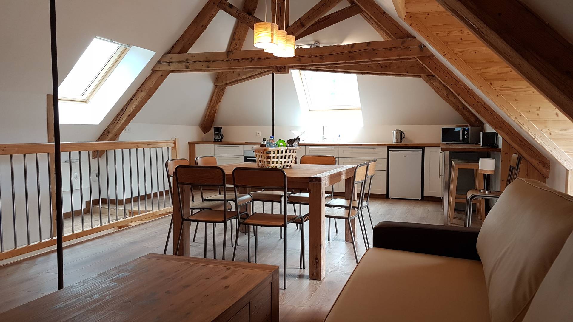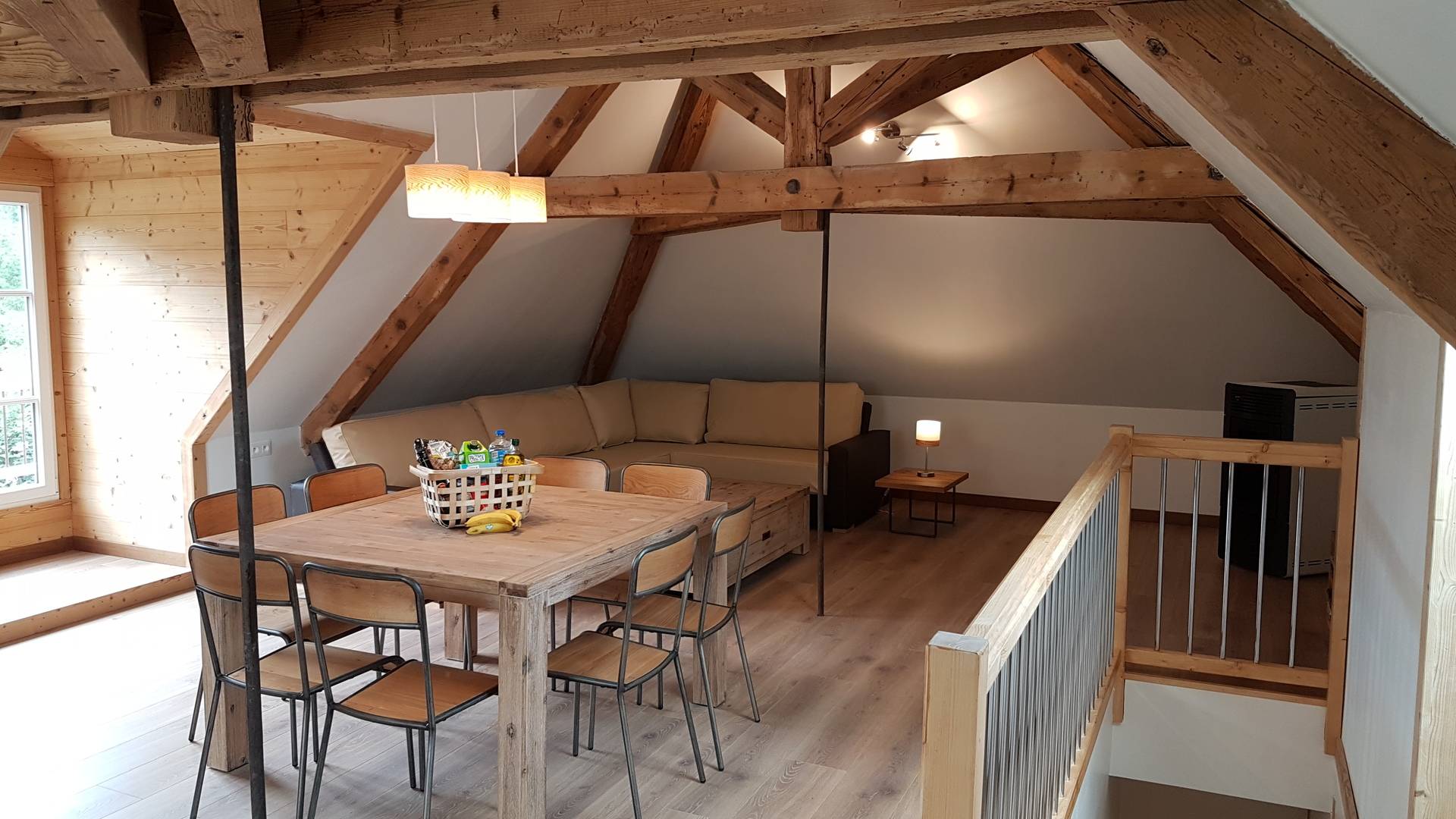 Le bâtiment a été transformé en deux appartements. l'appartement rez-de-chaussée 'Ornon' (89m2) peut accueillir