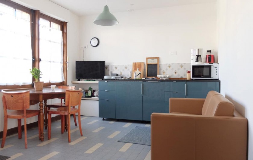 La maison est composée d’une pièce à vivre avec cuisine ouverte équipée,