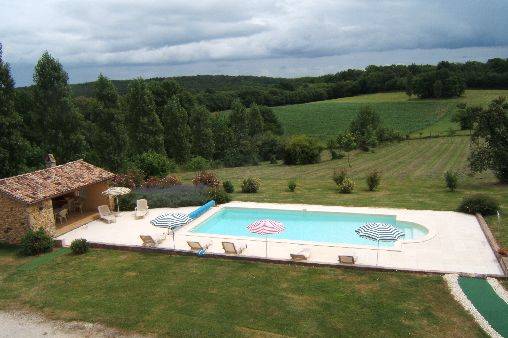 Clos Brunet, parc 5.000 m² clos, vue vallée et forêt, demeure restaurée, jusqu'à 8 personnes (+ bébé). Salon/séjour cheminée, cuisine équipée ouvrant sur terrasse, buanderie. Au 1er, 2 chambres avec salles d'eau (+ bains). Au 2e, 2 chambres, salle de bains + douche. TV, vidéo, lecteur CD, Wi-fi, piscine sécurisée (10 x 5 m), pool-house, barbecue, transats, ping-pong ... Golf 6 km, bastides (concert).