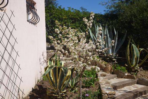 végétation est typiquement méditerranéenne: agaves, fleurs, mimosas et chêne-liège, oliviers etc...