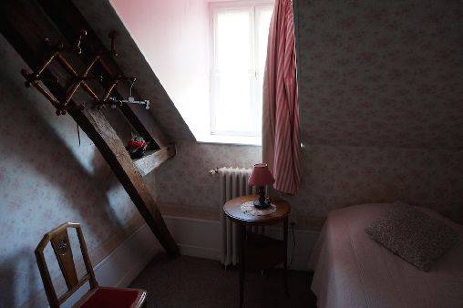 Au deuxième étage, chambre double avec trois lits + douche; (55€ pour 2 personnes et 75€ pour 3)
