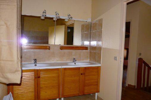 attenante à une grande chambre avec un lit de 90x190, une salle de bain avec baignoire, et un WC à chaque niveau.