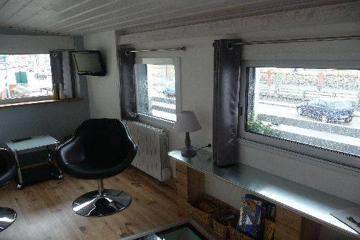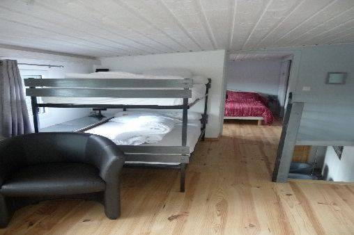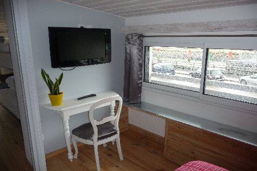 Autre pièce : 2 lits superposés (1 personne) avec télévision et petit salon avec vue sur la mer