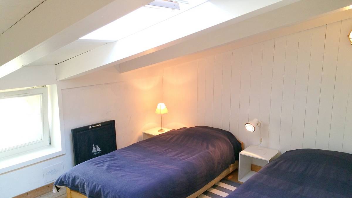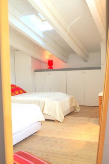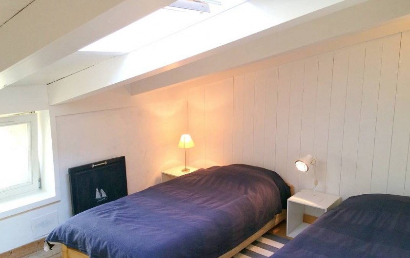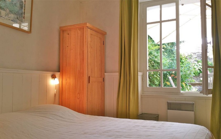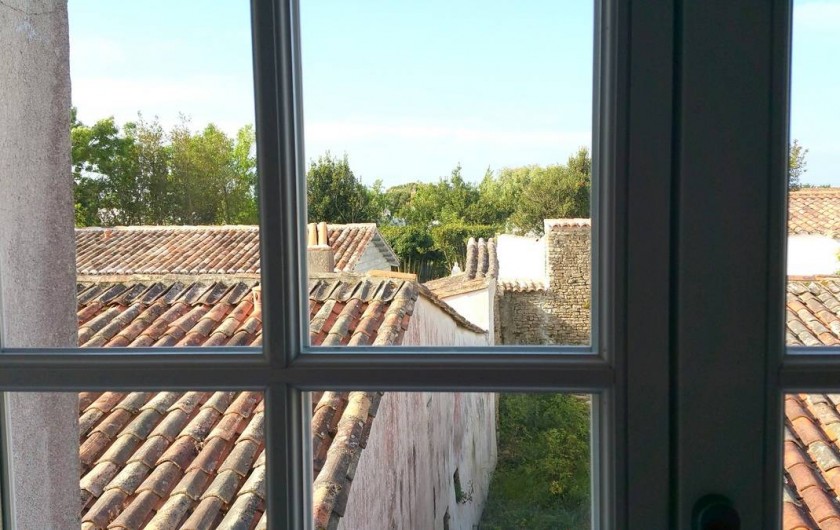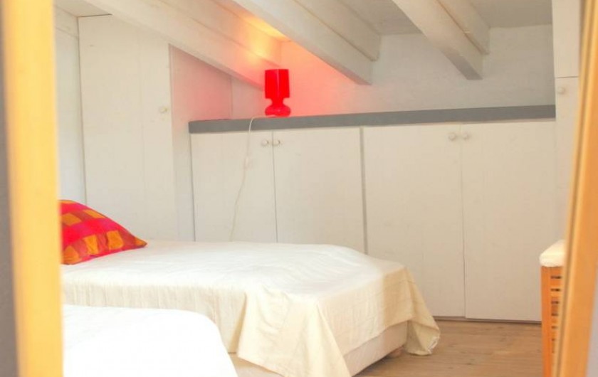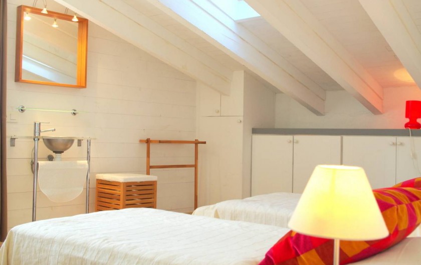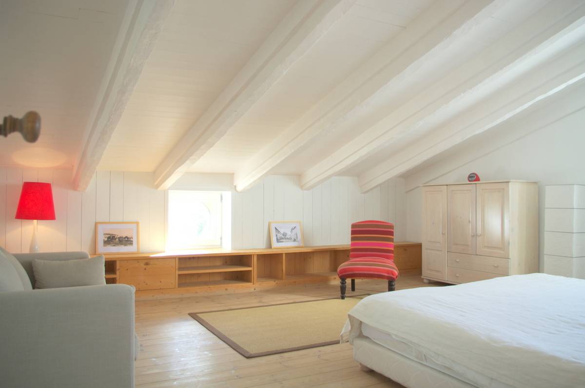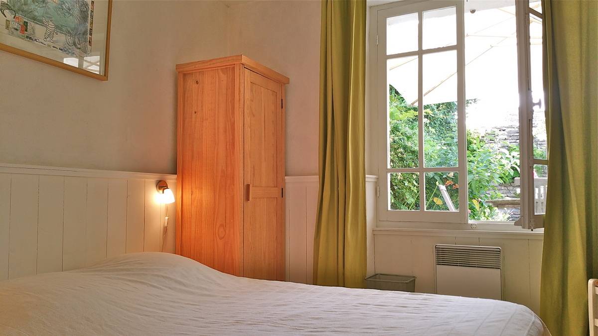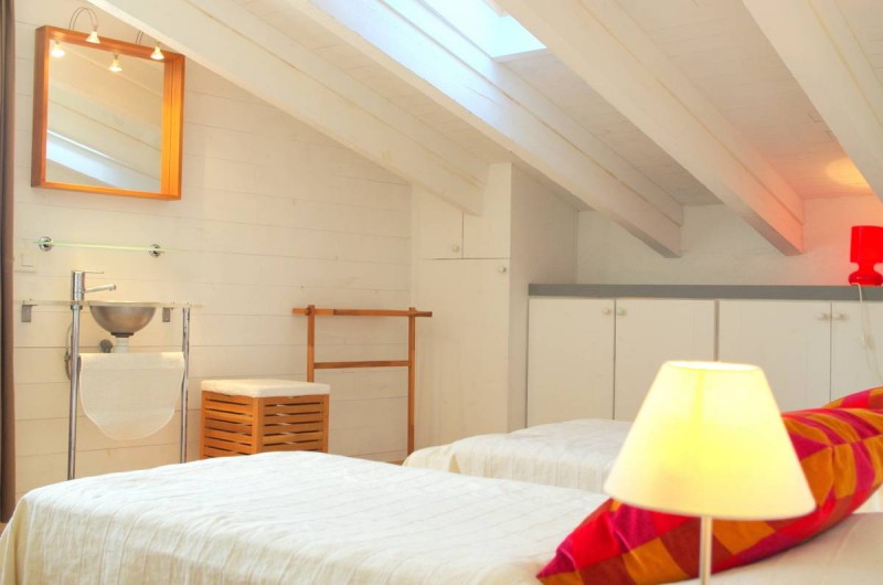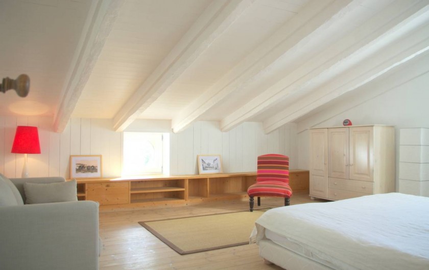 A l'étage trois chambres mansardée avec jolie vue sur les toits du village, dont une grande chambre parentale avec sa salle de bains en suite