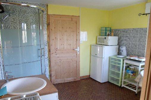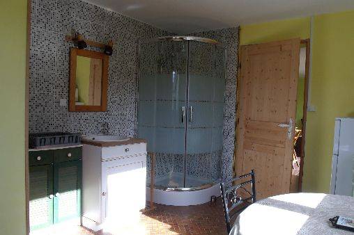 -pièce d'eau avec d'un côté lavabo,douche , machine à laver