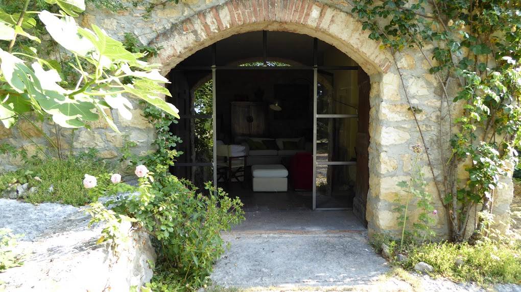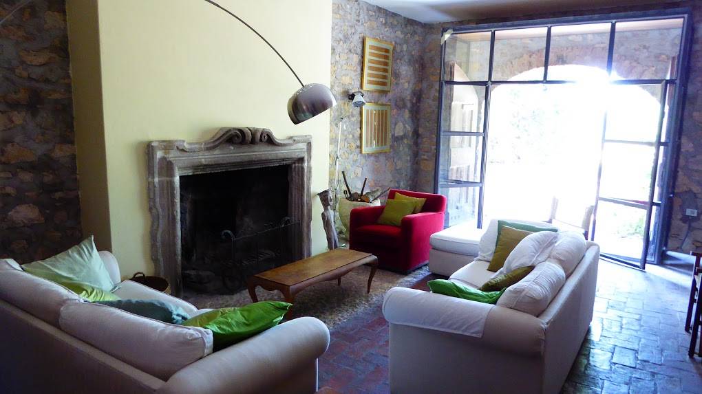 Petit salon, (ancienne cuisine) avec cheminée et "secchiaio" (évier en pierre), donnant sur le jardin (CD player, quelques disques et quelques jeux de société). Table de jeux, chaises.