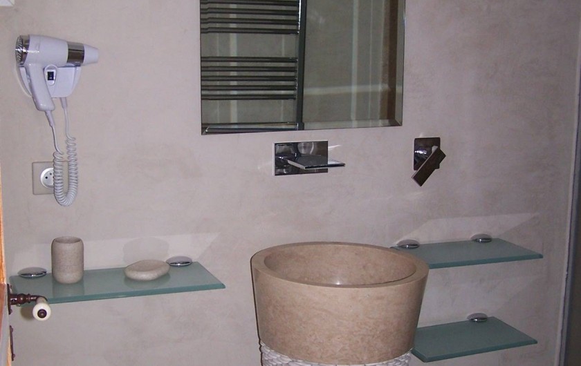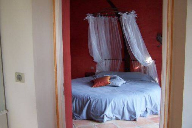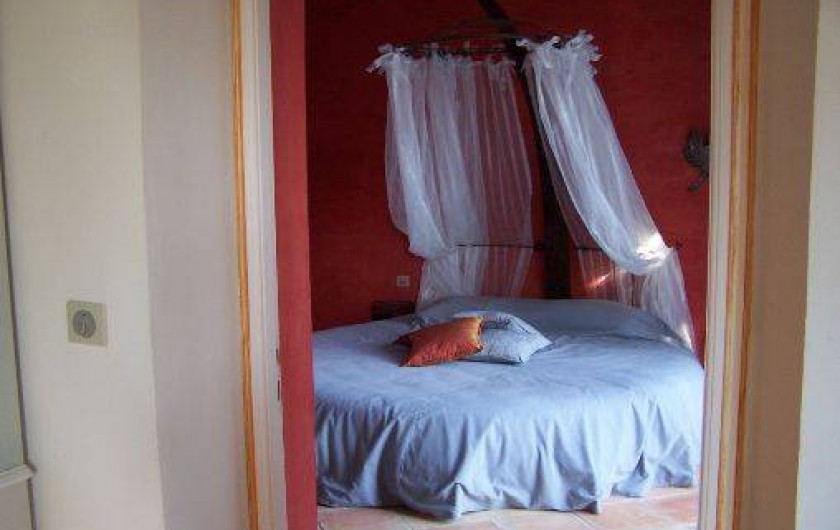 Deux sont dotées de lit double en 1.60m, la troisième d’un lit rond de 2.20m avec ciel de lit.