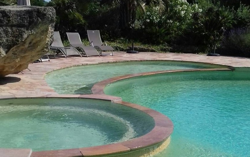 Vous pourrez profiter pour l'exercice et le bien-être de la piscine aux formes libres et profondeurs variées (1.20 pour la petite partie et sur tout le pourtour, jusqu'à 2.20 pour la grande partie + petit bassin 0.65) et de son spa attenant.