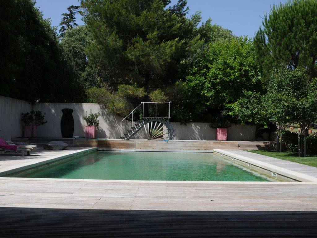 Plus au sud, est un jardin de pelouse récemment planté de lauriers-roses planté ruelle adjacente, menant à la zone de la piscine, qui à son tour est entourée de jardins fleuris aménagés et allées de gravier, idéal pour la pétanque et autres jeux, et par un 50 sujets Oliveraie, qui fournit Est détente vues de la plage de la piscine et pool house.