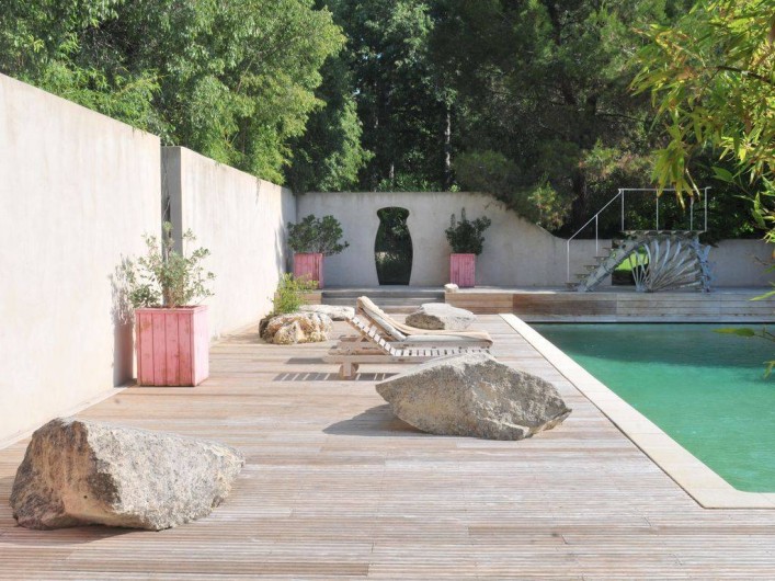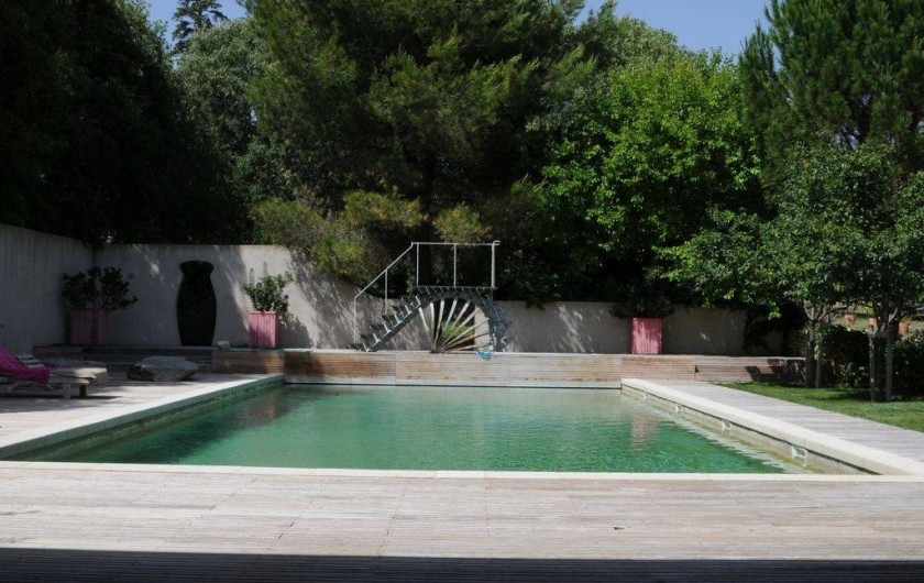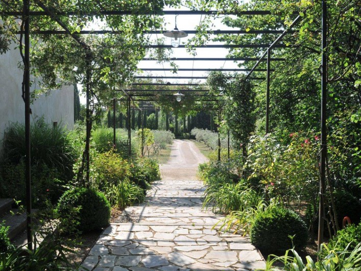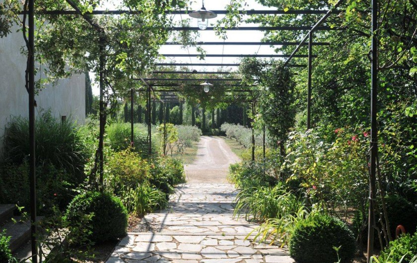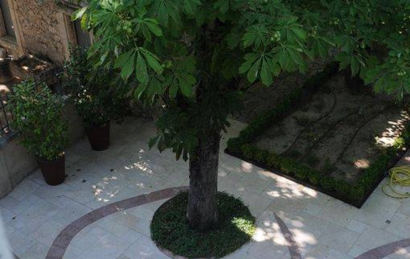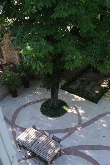 Sud de la cour est un 600 m² planté jardin à la française avec 200 ans micocouliers majestueuses (des micocouliers), de pins et de cèdres Libanais, structurés par des haies de lauriers.