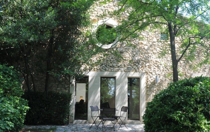 Il se compose d'une maison de maître du 17ème siècle et une ferme à soie, à la fois rénové aux normes les plus élevées de l'architecte professionnel et décorateur, et distribués autour d'une cour lapidé avec motif artistique, vieux bassin, ombragée par un tilleul et de châtaigniers.