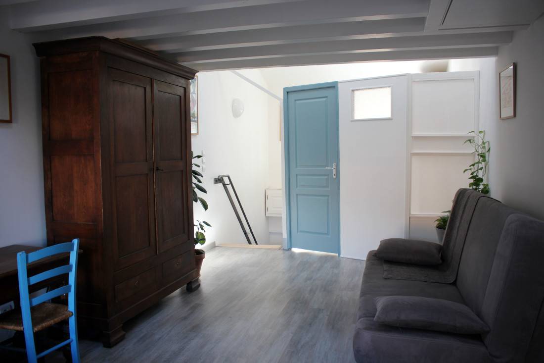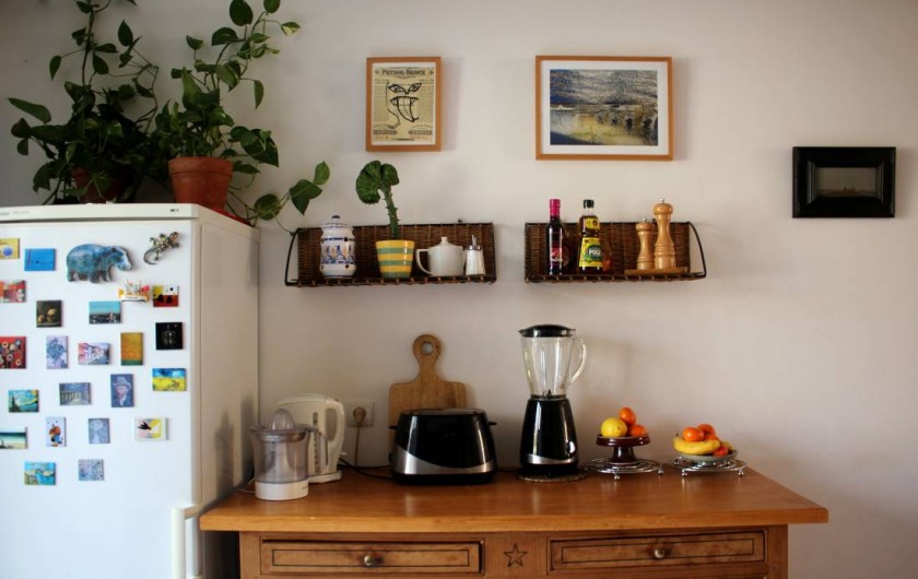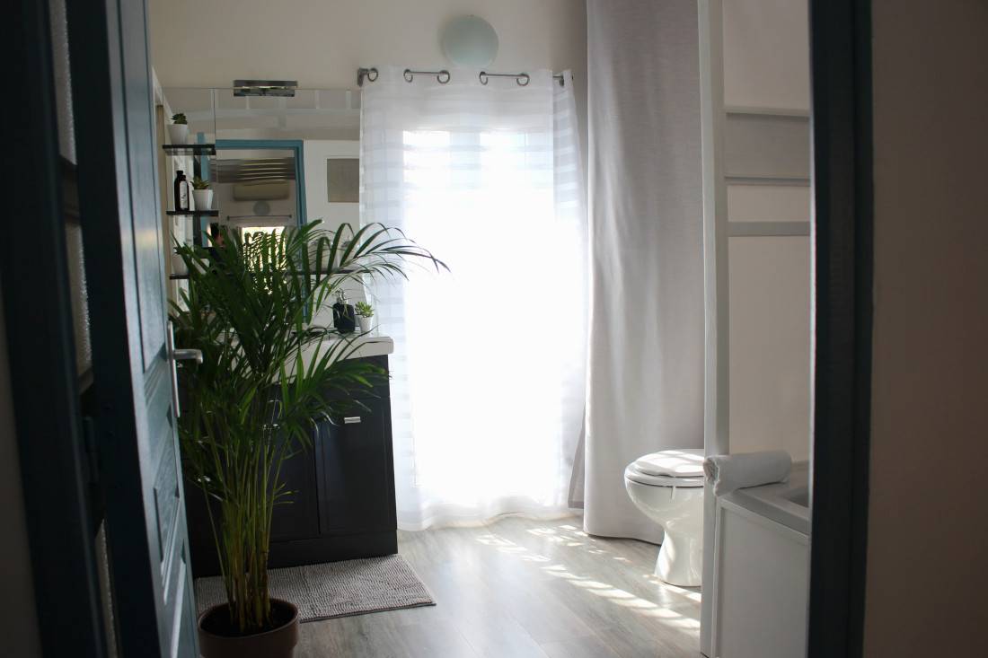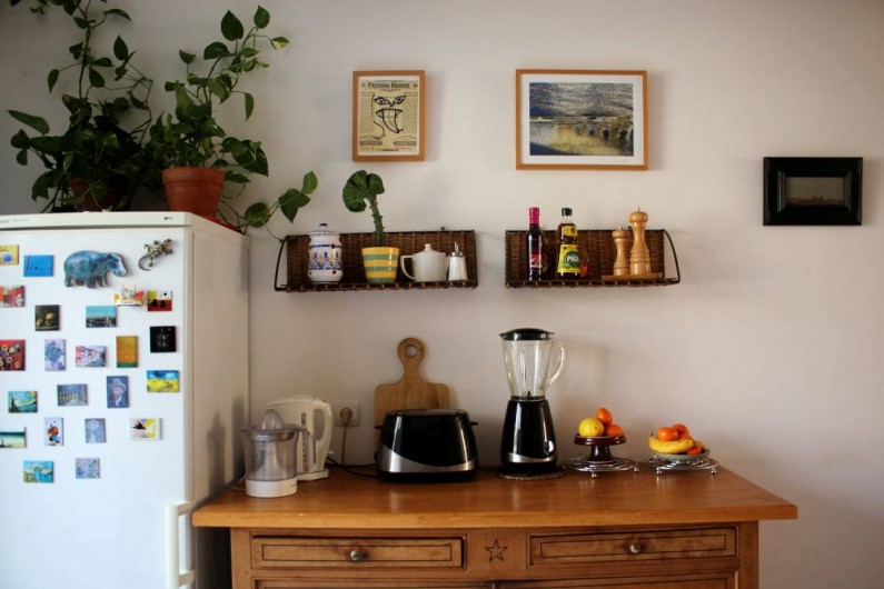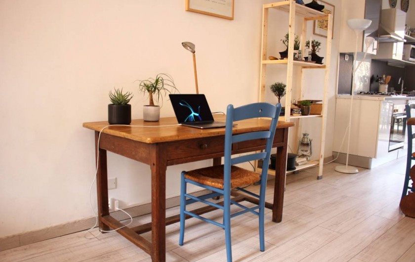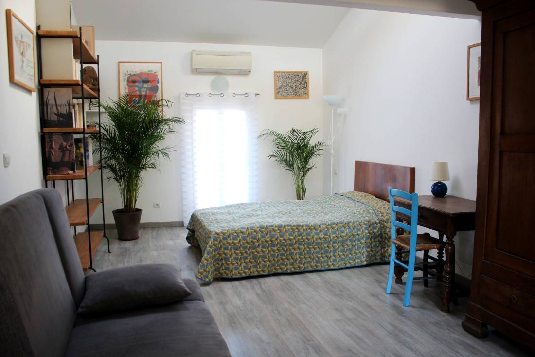 et congélateur, un micro-onde, un four électrique. Vous y trouverez également une bouilloire, un presse agrume, un toaster, un blender. Également un vaisselier avec toute la vaisselle, et tous les condiments nécessaires. Cette pièce donne sur une belle terrasse, très calme, sans vis-à-vis. Un barbecue est à votre disposition pour de bonnes grillades ! Il n'y a pas de soleil direct sur la terrasse, ce qui est une chance pour nos climats. Le wifi délivre un très bon débit dans toute la maison. Au deuxième étage, qui est climatisé, le lit est de 140x200 cm. La fenêtre donne sur un jardin très calme. Vous y trouverez aussi un grand canapé-lit, un coin bureau, une grande armoire pour le rangement. Toute la literie est fournie. Dans la salle de bain indépendante il y une baignoire avec de l'eau chaude (grand ballon 200 L) délivrée de façon parfaite et avec une très forte pression, un WC, des rangements, du savon, des serviettes, du papier WC.
