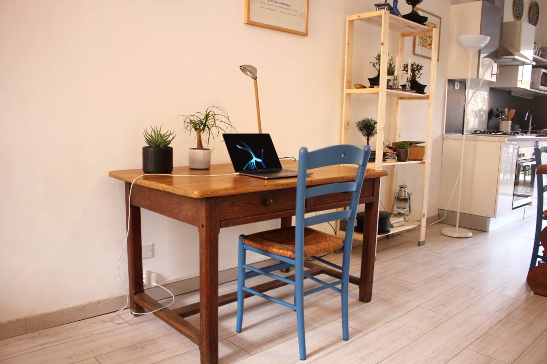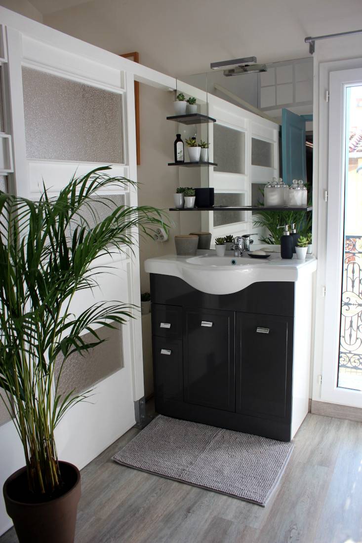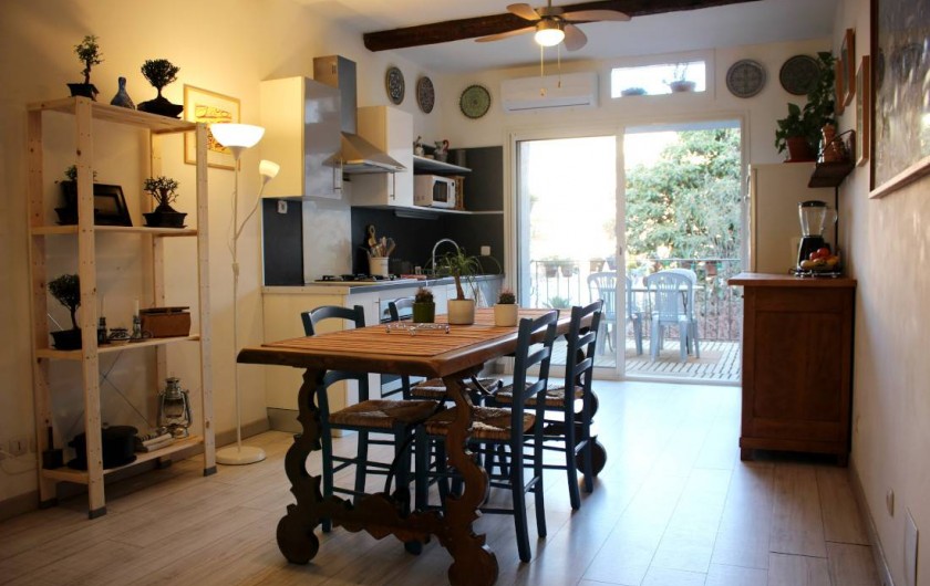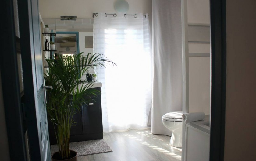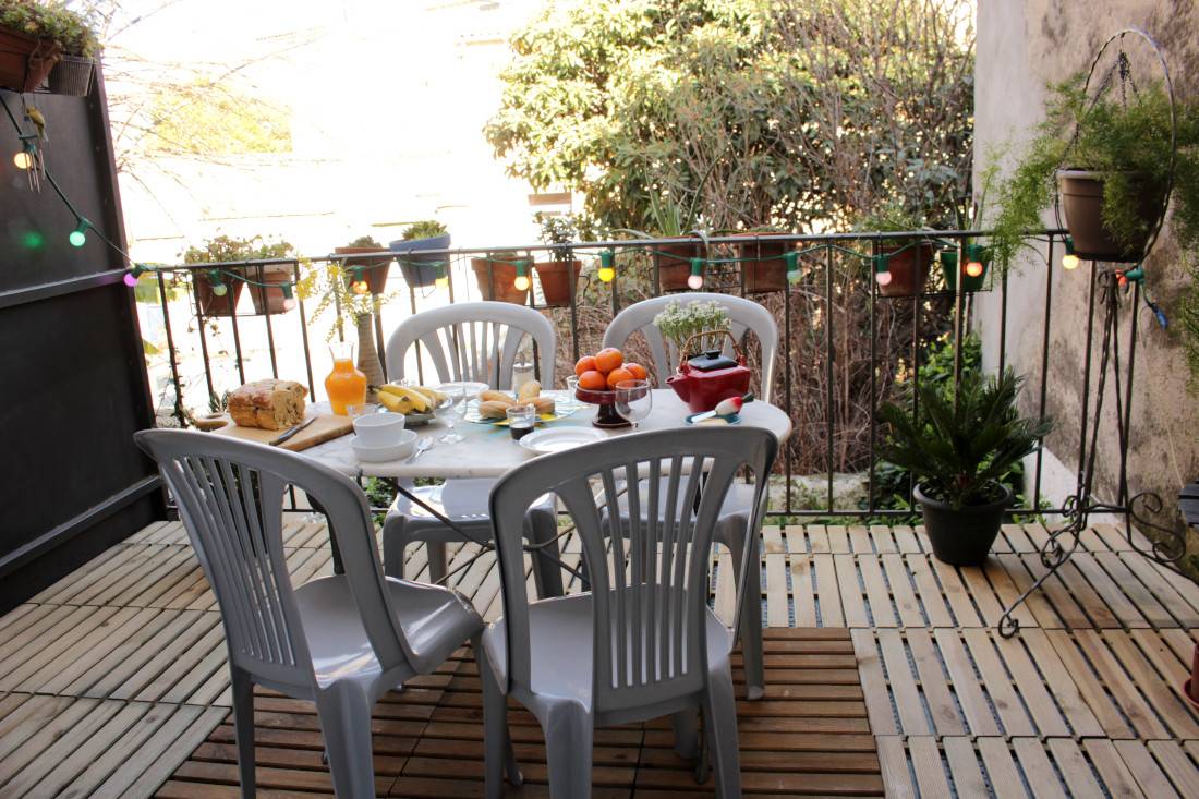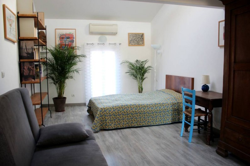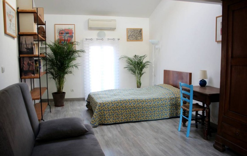 et congélateur, un micro-onde, un four électrique. Vous y trouverez également une bouilloire, un presse agrume, un toaster, un blender. Également un vaisselier avec toute la vaisselle, et tous les condiments nécessaires. Cette pièce donne sur une belle terrasse, très calme, sans vis-à-vis. Un barbecue est à votre disposition pour de bonnes grillades ! Il n'y a pas de soleil direct sur la terrasse, ce qui est une chance pour nos climats. Le wifi délivre un très bon débit dans toute la maison. Au deuxième étage, qui est climatisé, le lit est de 140x200 cm. La fenêtre donne sur un jardin très calme. Vous y trouverez aussi un grand canapé-lit, un coin bureau, une grande armoire pour le rangement. Toute la literie est fournie. Dans la salle de bain indépendante il y une baignoire avec de l'eau chaude (grand ballon 200 L) délivrée de façon parfaite et avec une très forte pression, un WC, des rangements, du savon, des serviettes, du papier WC.
