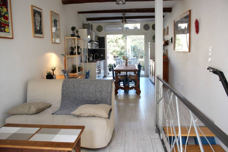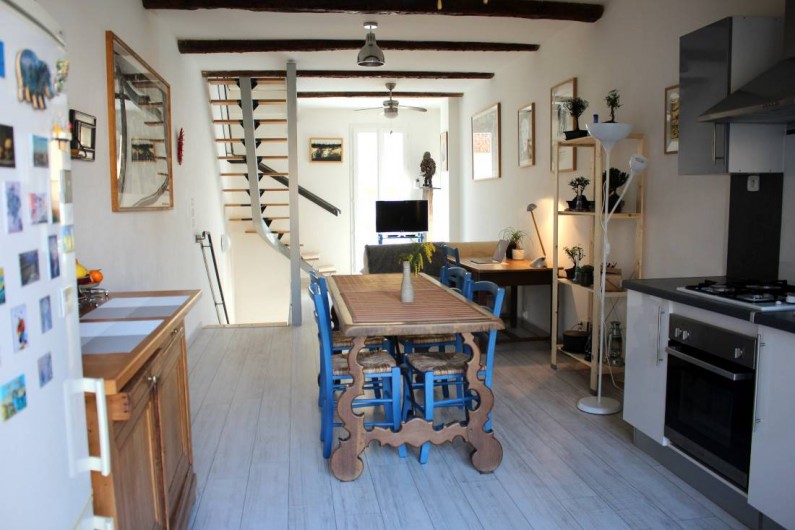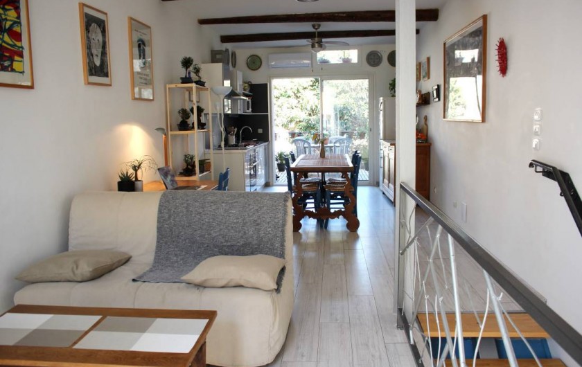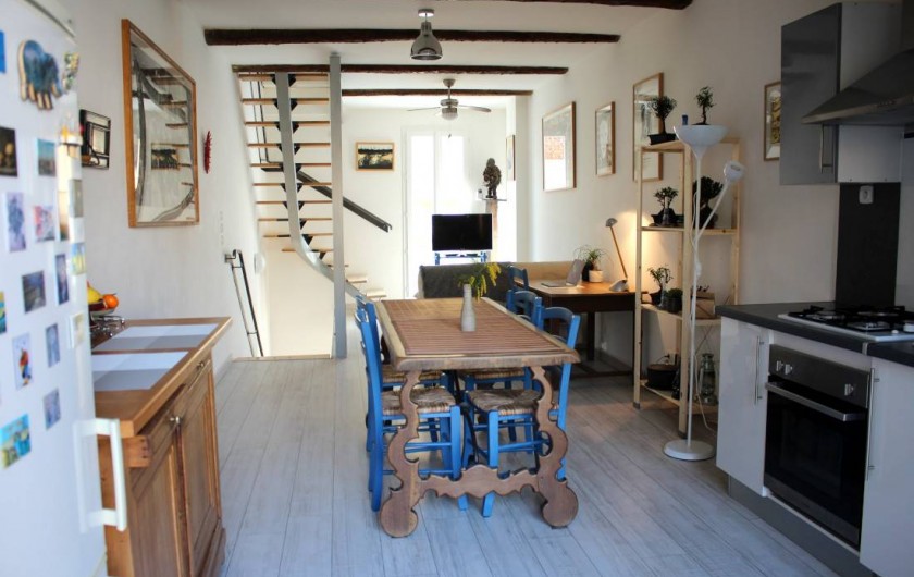 Bienvenue dans notre charmante maison située au cœur de la ville de Mèze. Elle est idéale pour un week-end ou pour un séjour plus long pour vous ressourcer. Venez profiter du soleil du sud, des baignades. La maison est très aérée, spacieuse, calme. L'ensemble est très lumineux, très propre. Vous accédez au premier étage, la pièce à vivre, par un escalier large et confortable. Elle comprend un coin télévision, avec un canapé convertible, un balcon, un coin bureau, une grande table à manger pour 8 personnes, une coin cuisine tout équipée: 4 plaques de cuisson au gaz, un frigo